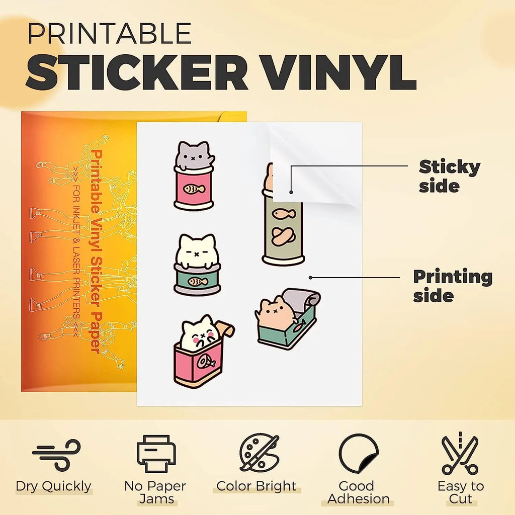 HTVRONT 100 Sheets 8.5x11in Matte Glossy Printable Vinyl Sticker Paper Waterproof Copy Paper For Inkjet Printer Dries Quickly