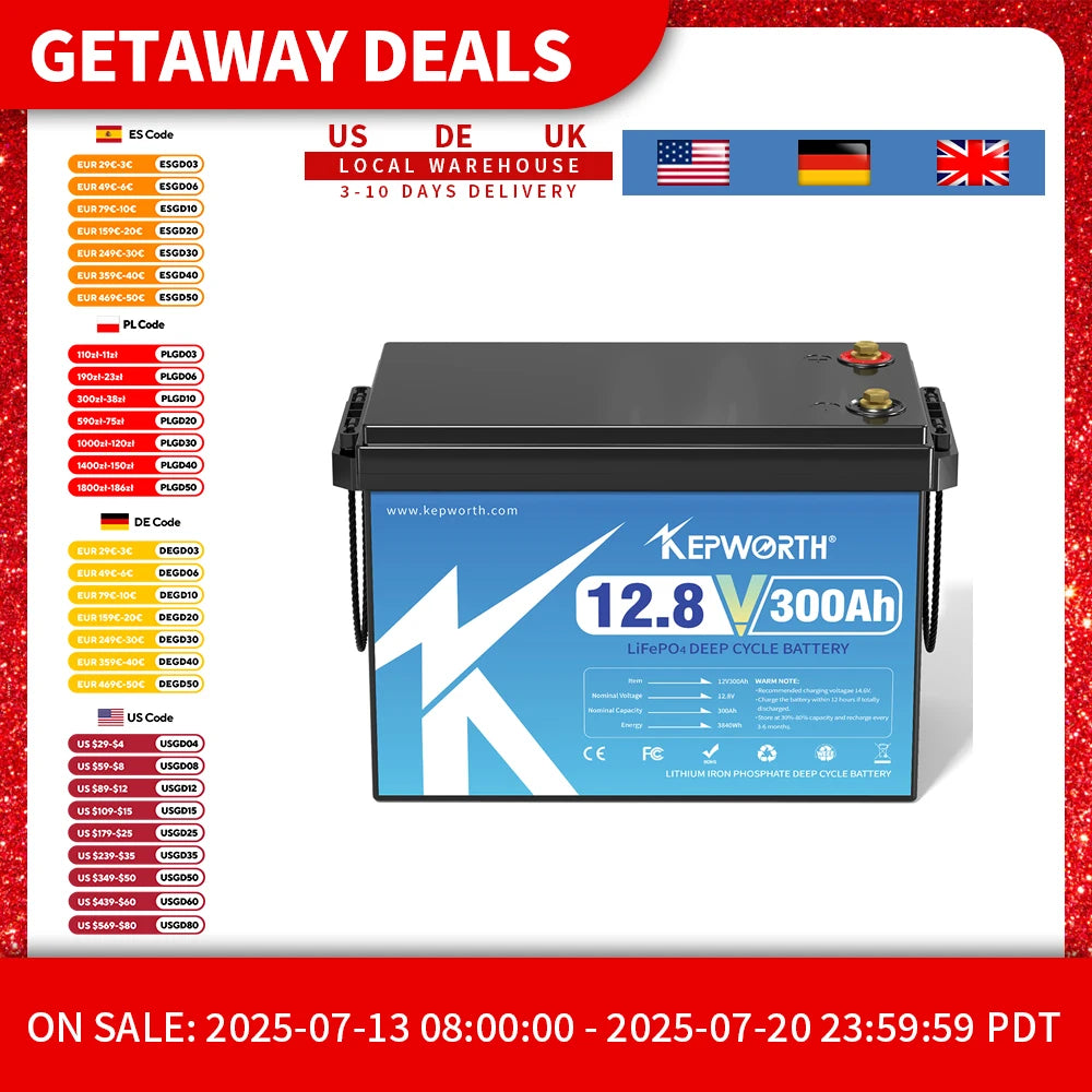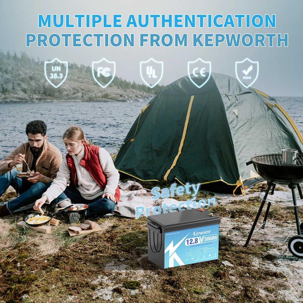 KEPWORTH 12V 300Ah LiFePO4 Battery, Built-in 200A BMS 3840Wh Energy Deep Cycles, Perfect for Off-Grid, Motorhome, Solar System