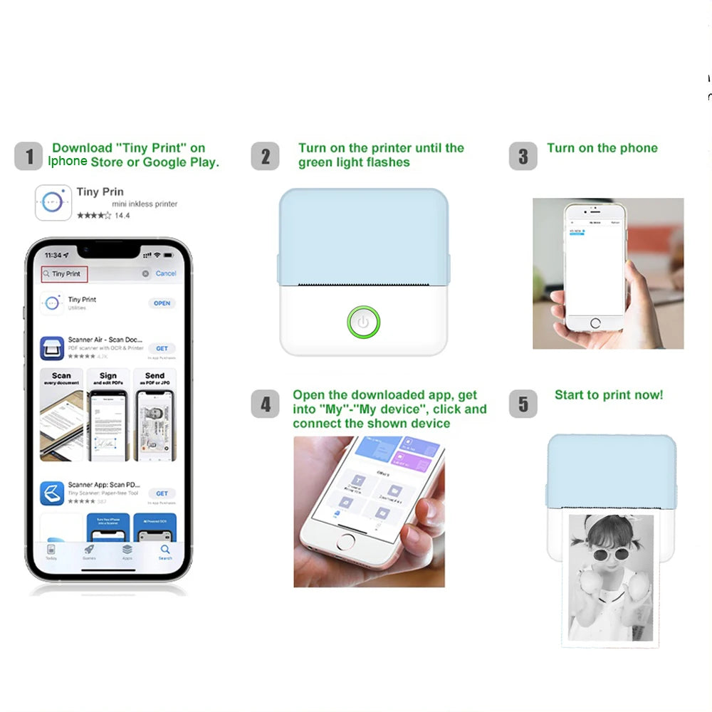 Mini HD Portable Label Thermal Printer Endurance Bluetooth Printer for Student Error Title Note Wrong Pocket Inkless Printing