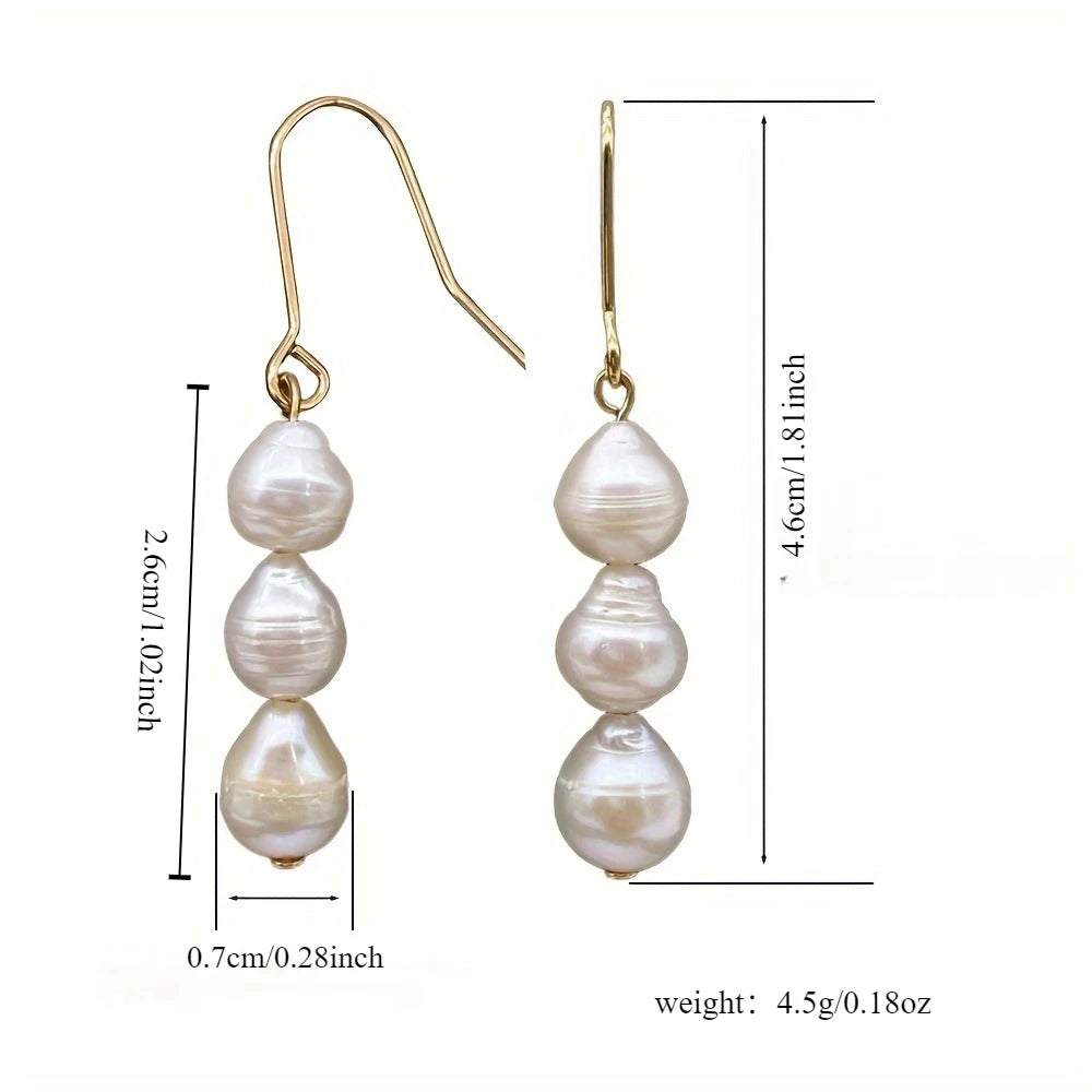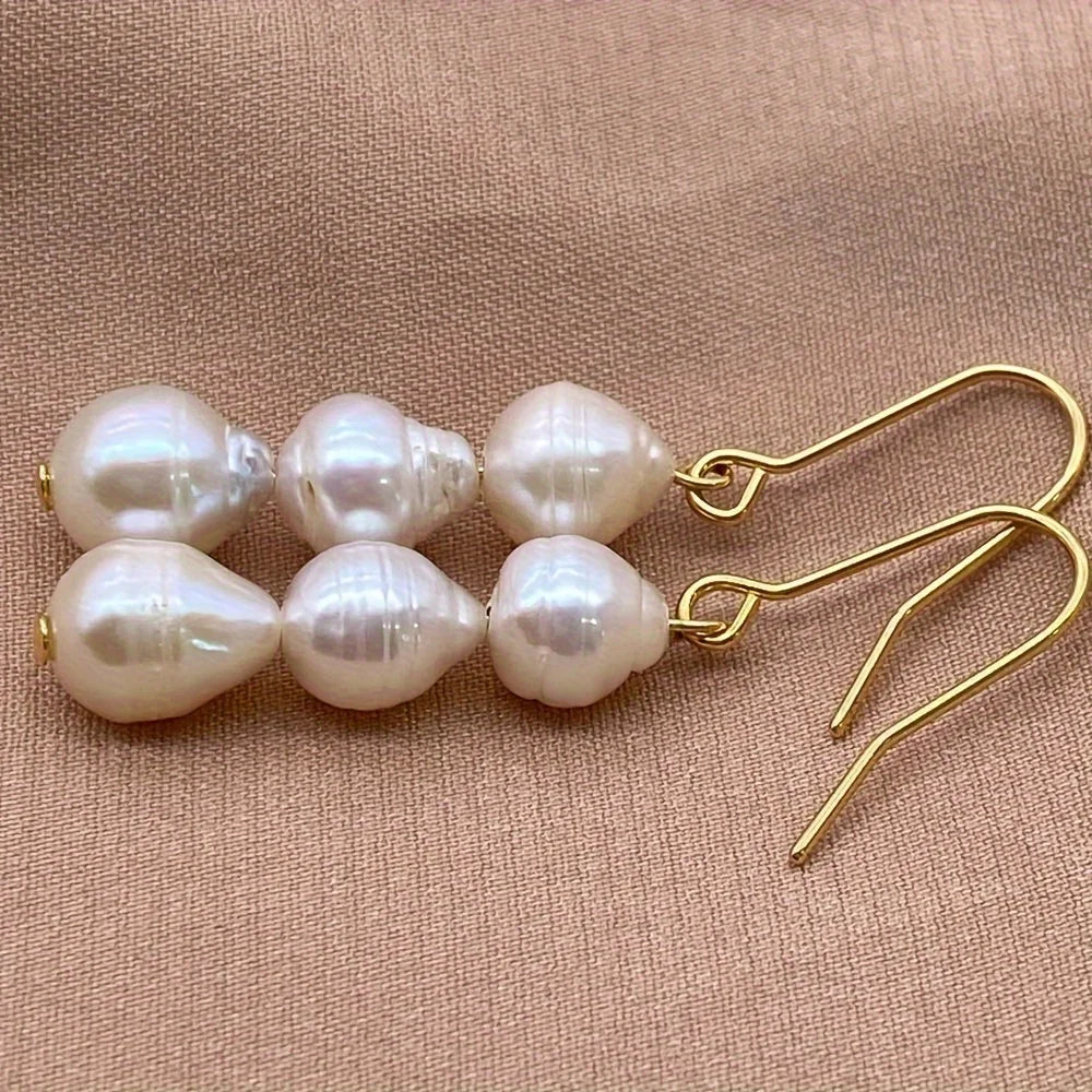 New Fashionable Baroque Freshwater Pearl Earrings. Simple, Elegant And Versatile Long Three-bead Earrings.