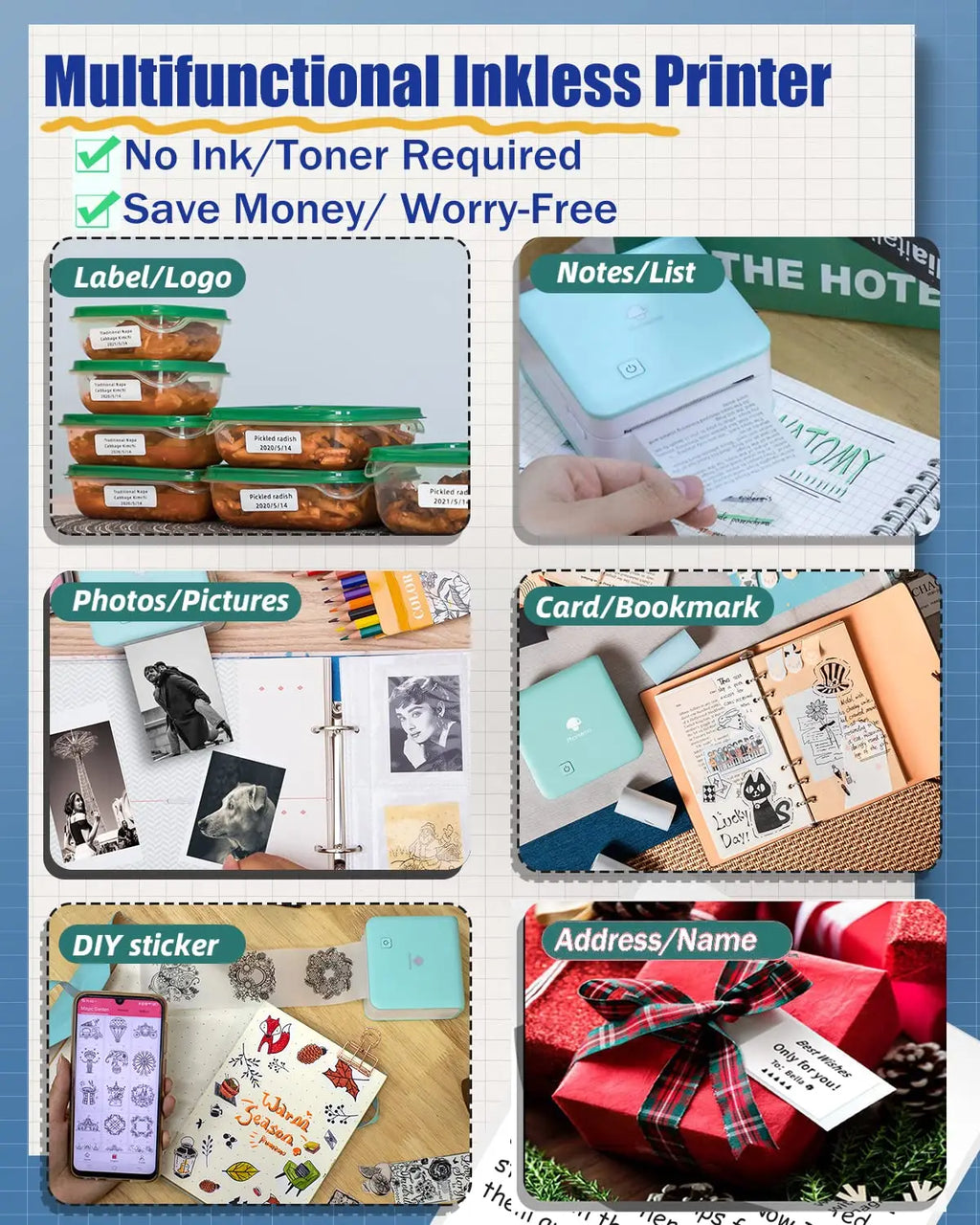 Wide ApplicationM02 Pro printer is suitable for printing photos, creating notes, markers, planner, labels, to-do lists, journals, scrapbooks, and DIY.