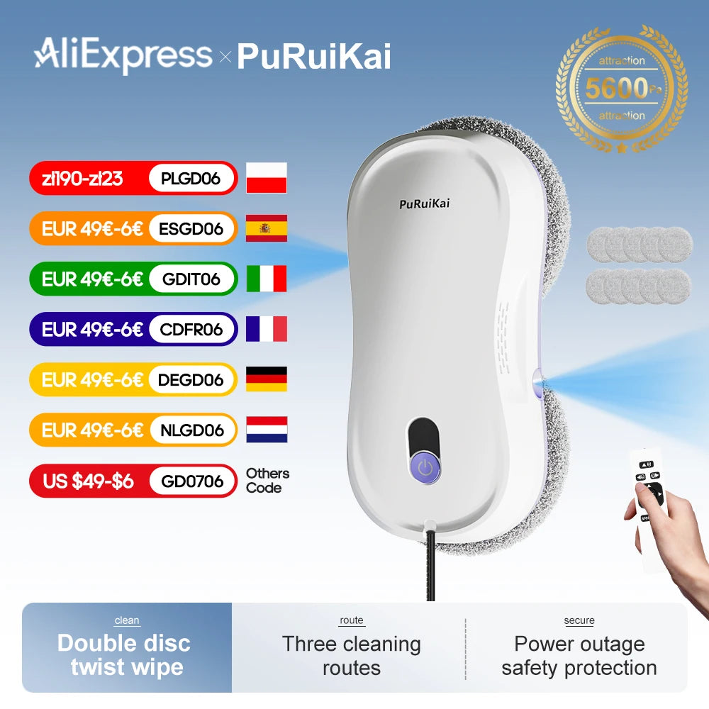 PuRuinKai dubbele nozzle huishoudelijke stofzuiger afstandsbediening robot glas reinigingsmachine elektrische glas raam reinigin