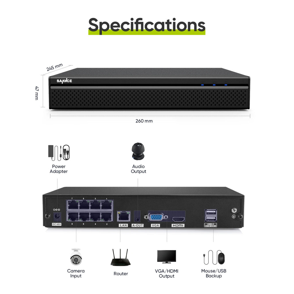Works with Third Party IP Cam -SANNCE and other brands' IP cameras can work with this SANNCE NVR. No need to leave your original cams in the corner, but it saves you extra expense.