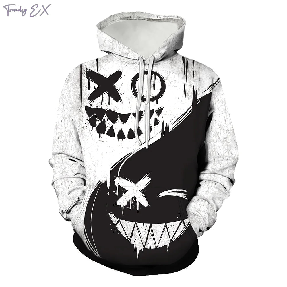 Sweatshirt Man Color Block Smile Print Cool Hoodies Y2k Blouse Pullover Kangaroo Pocket Long Sleeves Tops Fall Men's Clothing