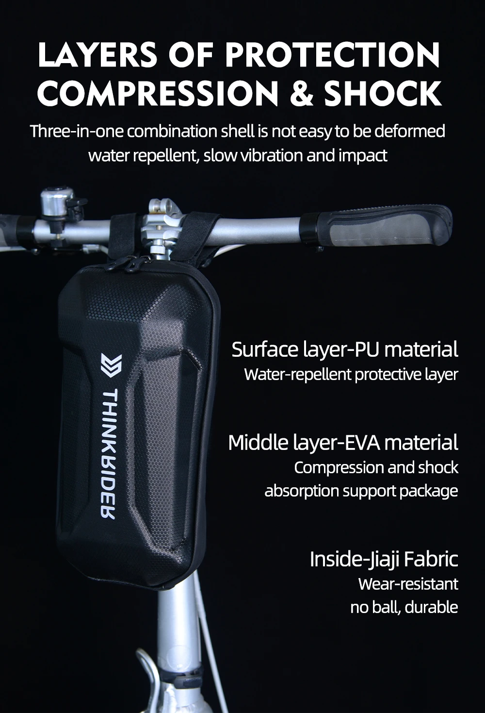 ThinkRider Electric Bike Scooter Front Bag Waterproof EVA Hard Shell Bags Reflective Handlebar Hanging Bag Storage Bag Xiaomi