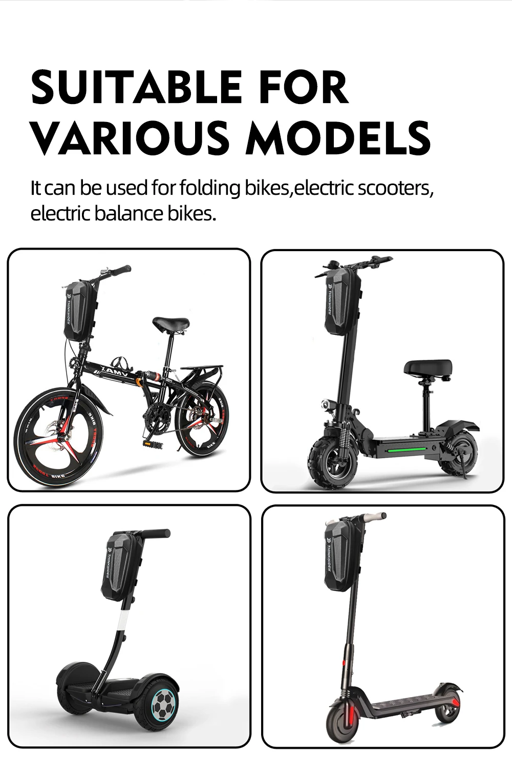 It can be used for folding bikes, electric scooters, electric balance bikes.