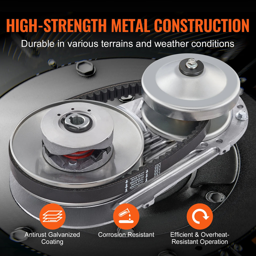 Robust Alloy Construction: The go kart clutch kit's components are crafted from heavy iron and aluminum alloy, featuring solid construction and superior heat dissipation. Finished with high-quality galvanized material, it provides enhanced rust resistance against oil and rain, extending the service life of the torque converter kit.
