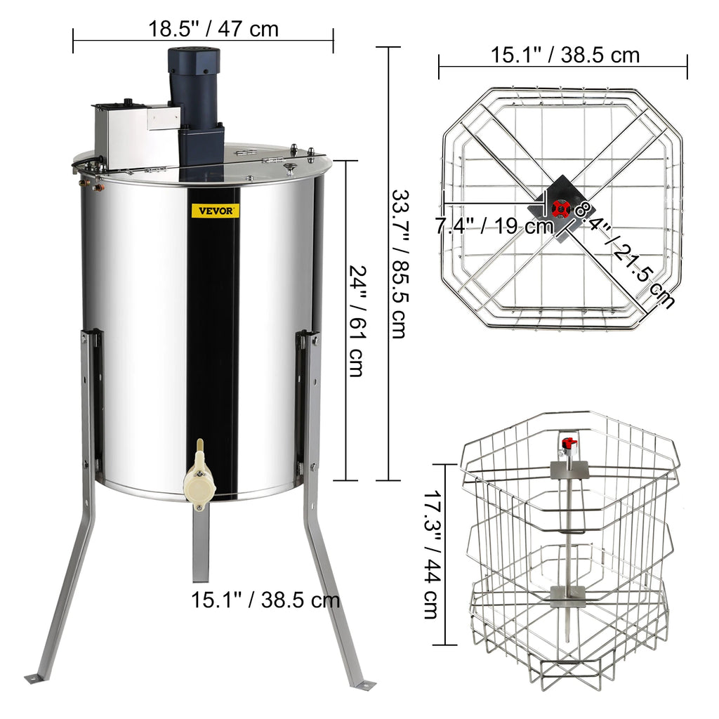 VEVOR Honey Extractor 2 3 4 Frame Manual Electric Stainless Steel Honeycomb Spinner Crank Honey Centrifuge Beekeeping Equipment