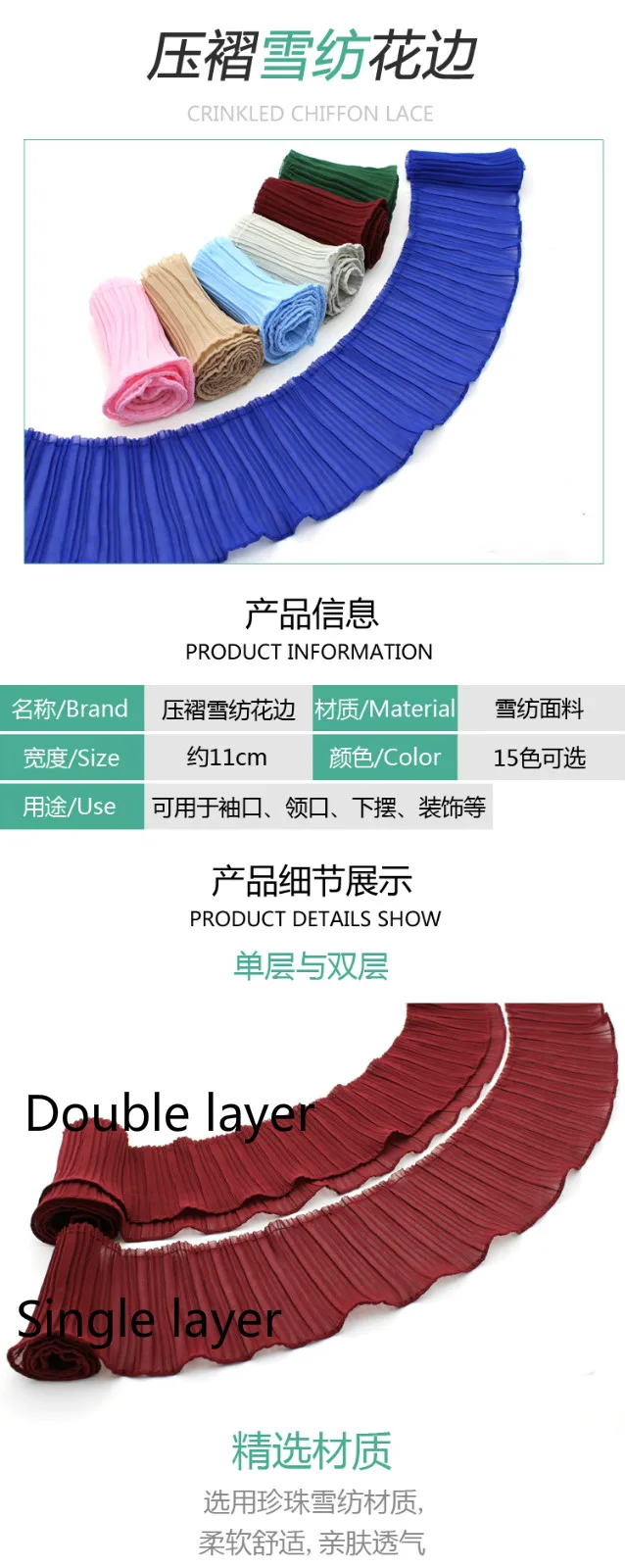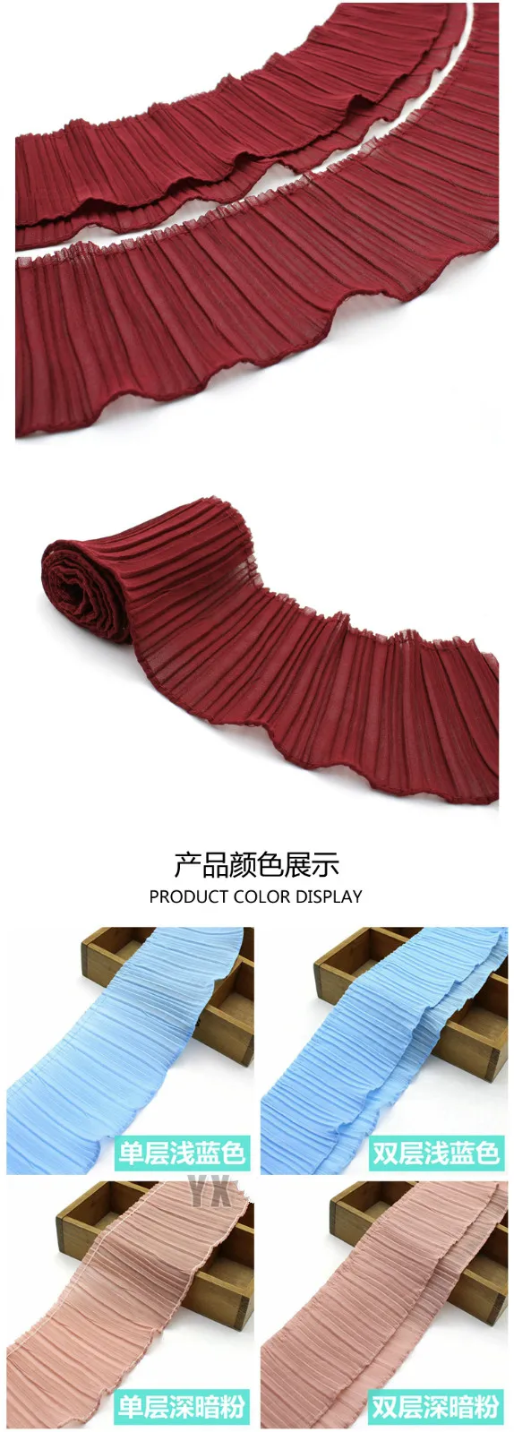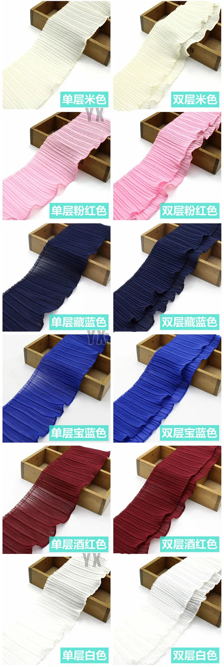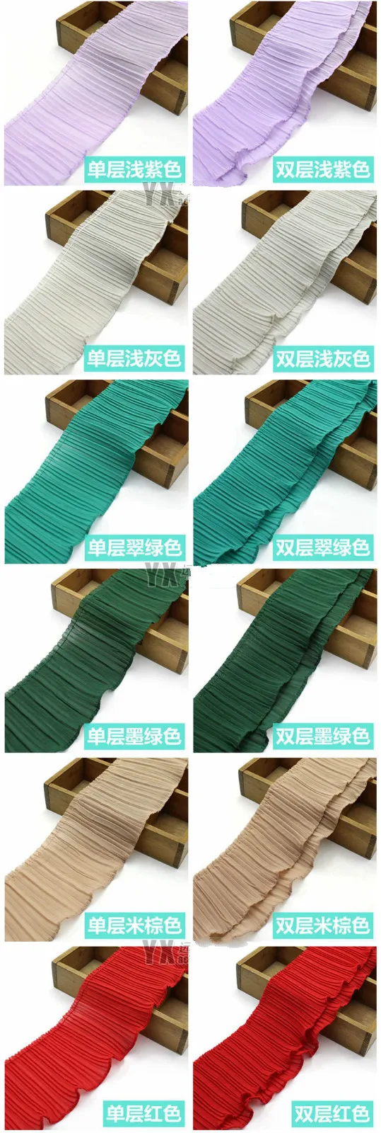2Y/Lot Clothing Accessories Single Double Layer Pearl Chiffon Lace Trim Organ Pleat Fold Lace Fabric 11CM /15 Colors Can Choose