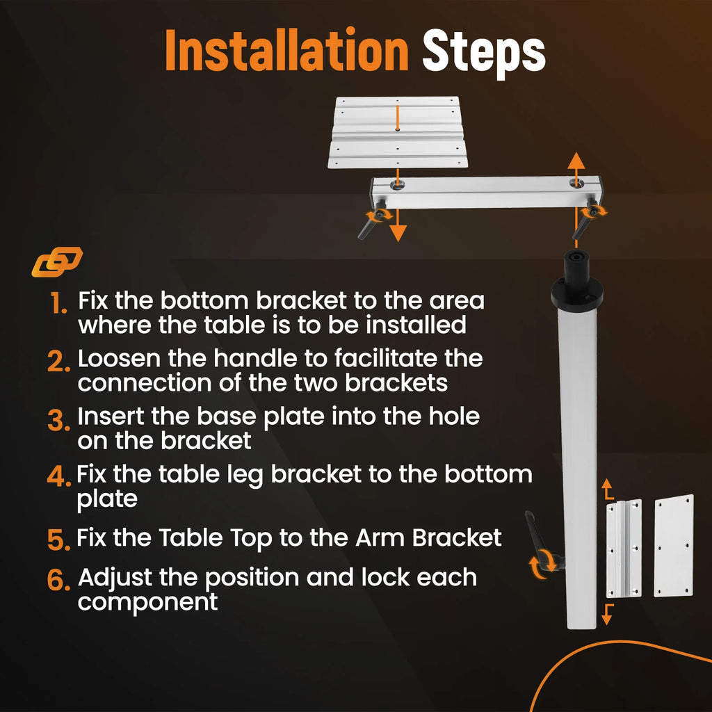 【360° rotation -- convenient to use】This table leg swivels 360° in two different locations: horizontal arm and the top plate.