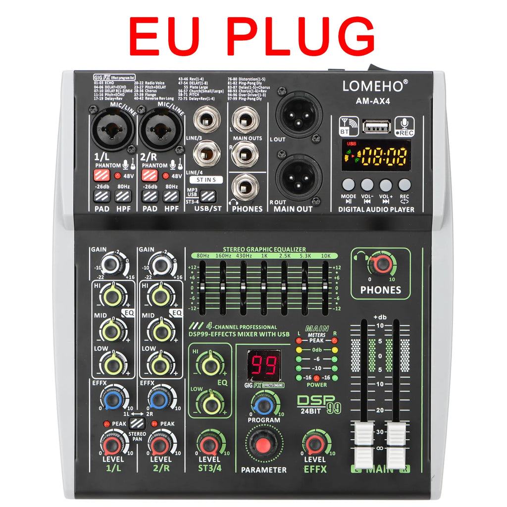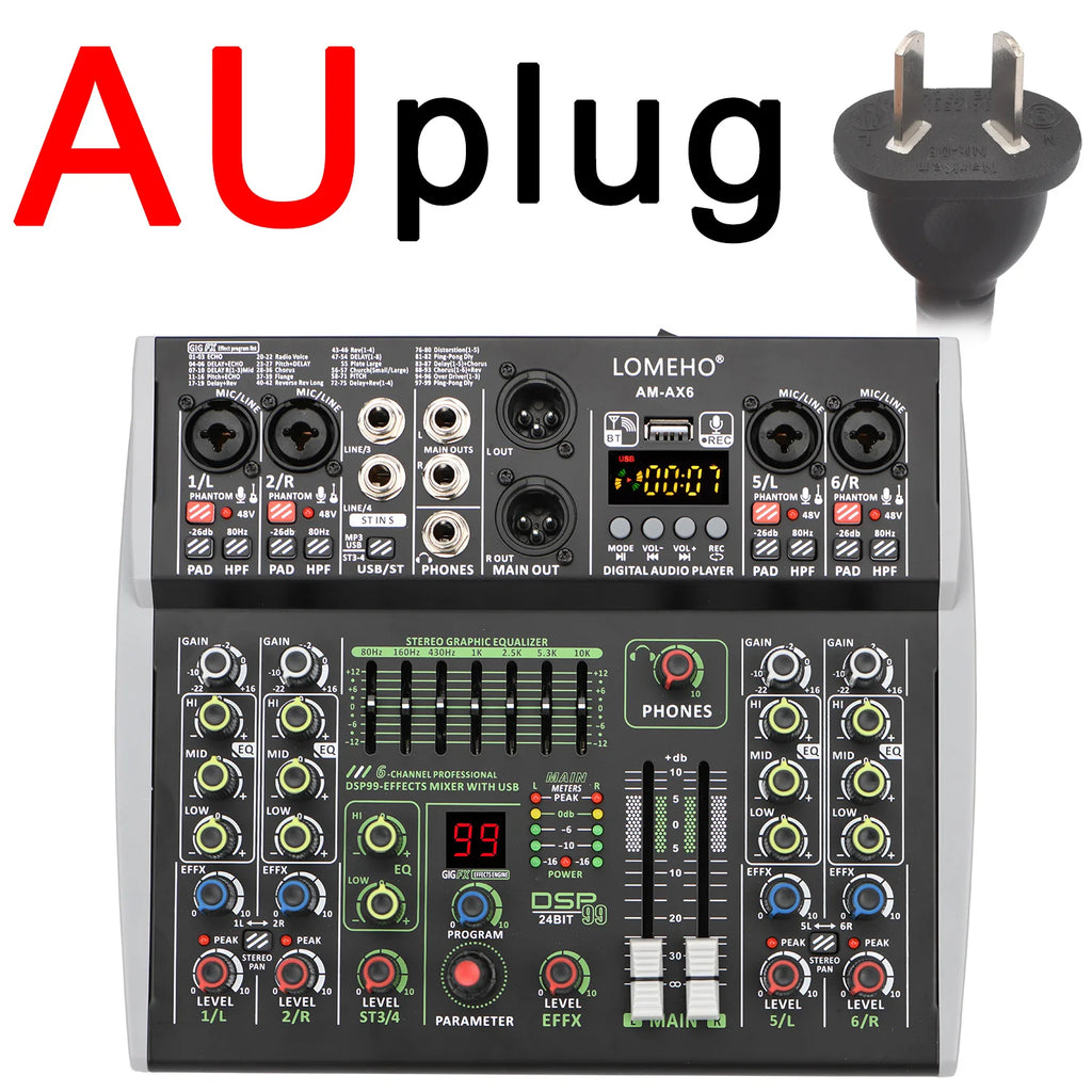 4/6 Channel Mixing Console 48V 99 DSP Effect Bluetooth Lomeho Audio DJ Mixer USB PC Play Record Podcast Sound Table AM-AX4