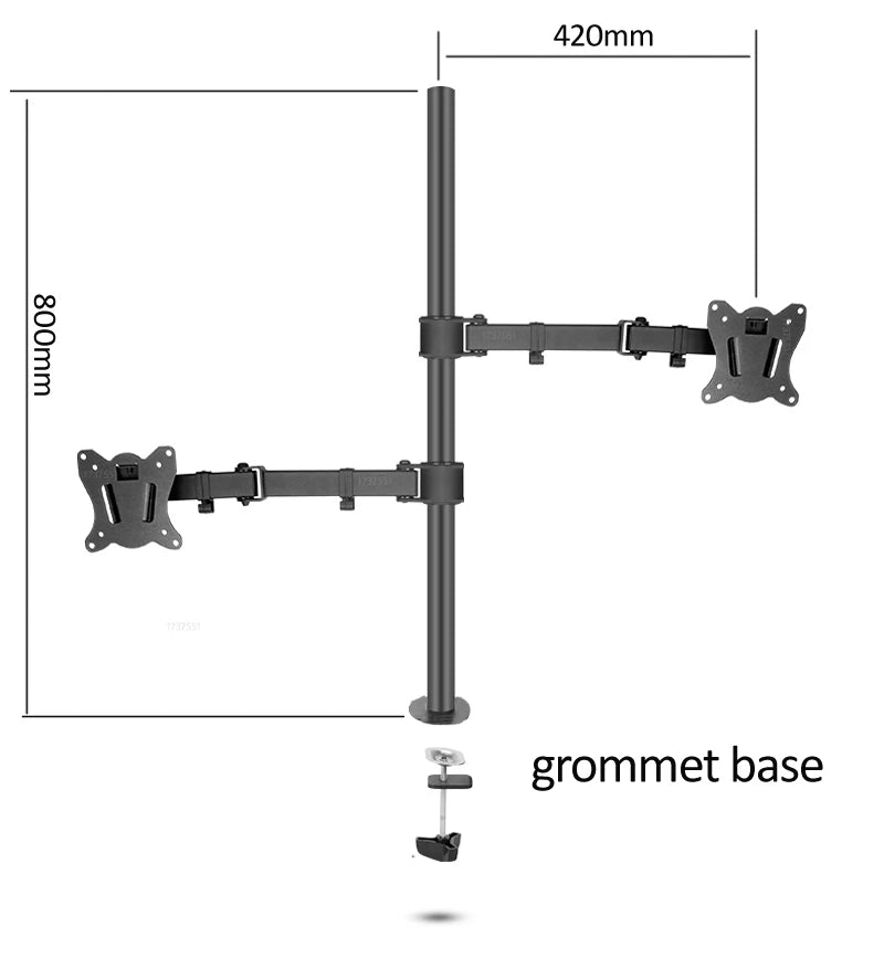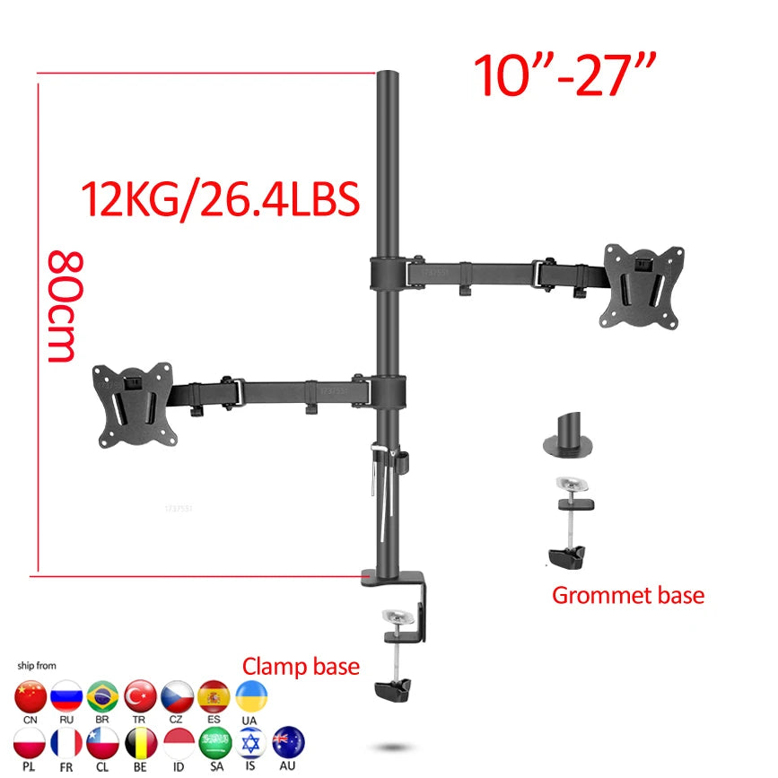 (80cm) DL-T902-280II Full Motion Dual Monitor desktop stand Holder 10"-27" clamp grommet hole base PC Mount foldable Arm 12kg