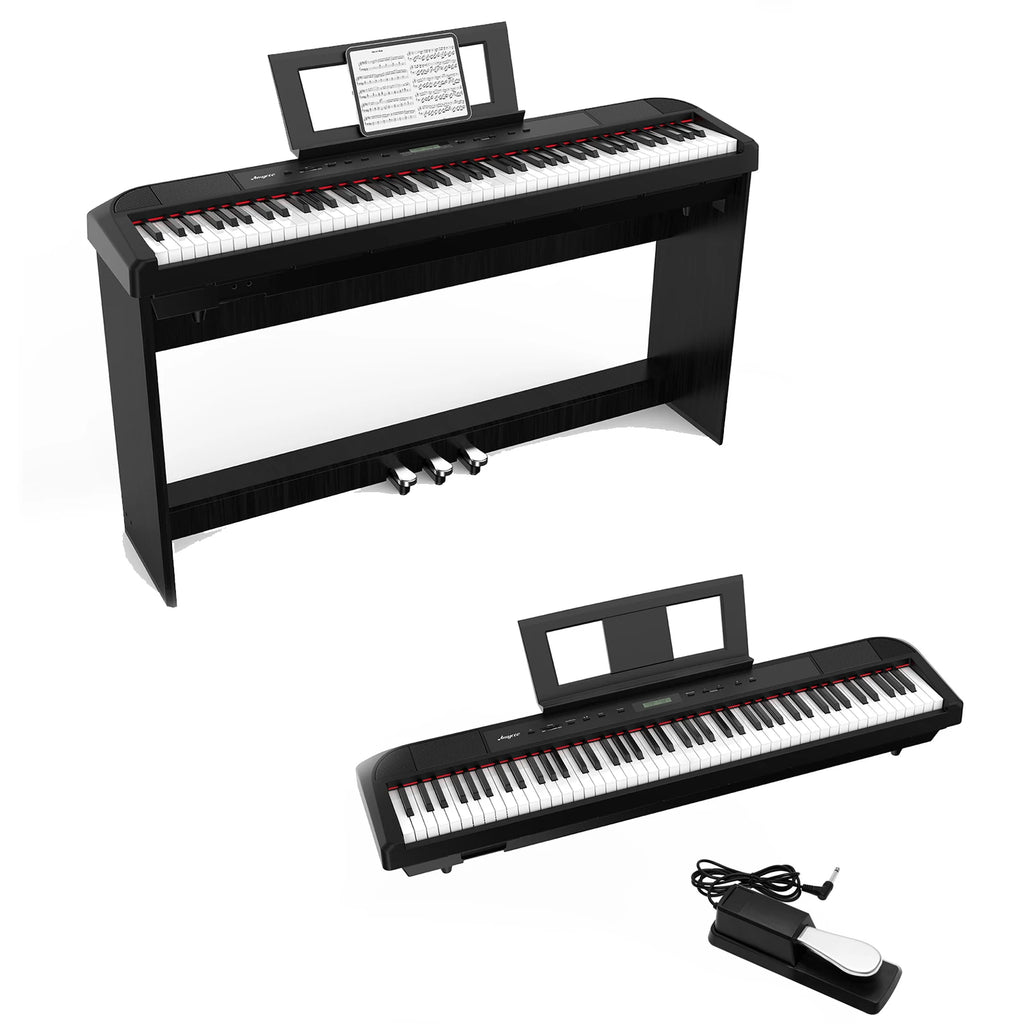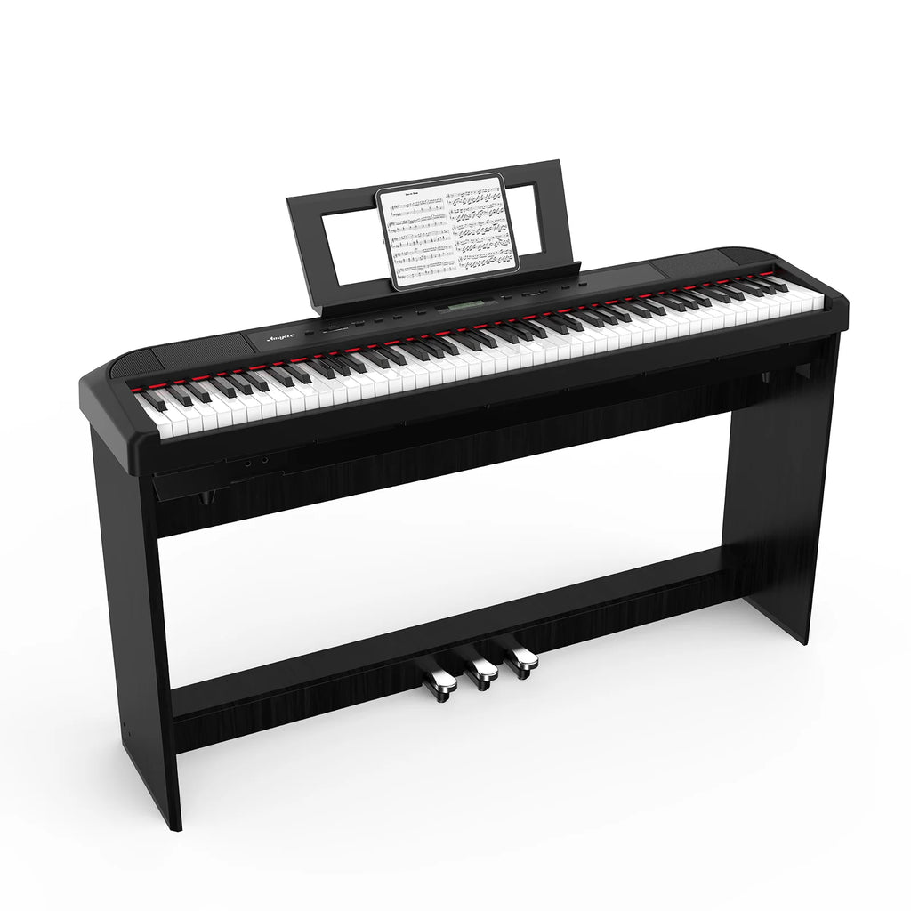 🎹【BEST CHOICE FOR BEGINNER & PROFESSIONAL】Our piano keyboard is designed with full size 88-key weighted hammer digital piano keyboard, our digital piano inexpensive, looked sleek, but still give your the experience of playing an actual piano. The piano keyboard sensitivity is extremely high, it is cheaper than a traditional piano, there is no need to worry about replacing parts. It is the best choice for beginners and professional players to practice and solo.
