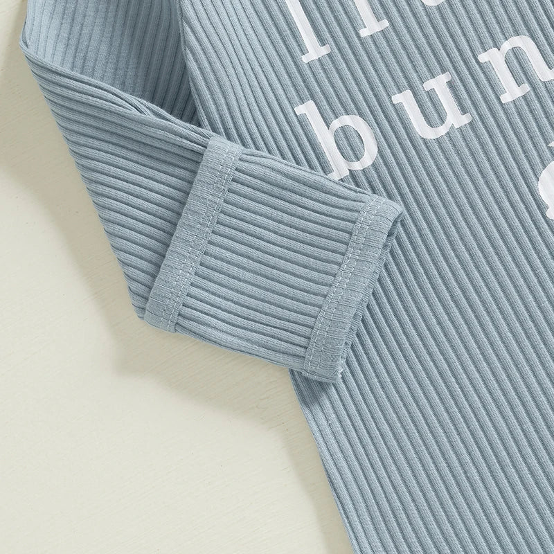Baby Easter Outfits Letter Bunny Print Long Sleeves Round Neck Full Length Bodysuit with HatSize(cm)