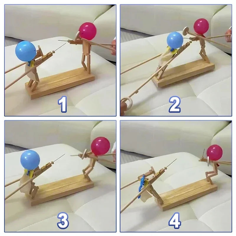 Balloon Bamboo Man Battle Handmade Wooden Fencing Puppets Wooden Bots Battle Game Two-Player Fast-Paced Balloon Battle Game