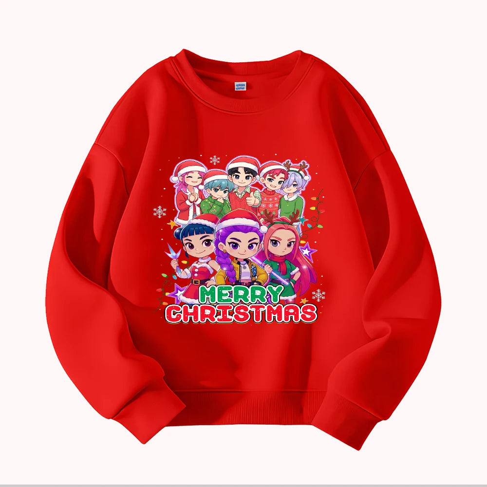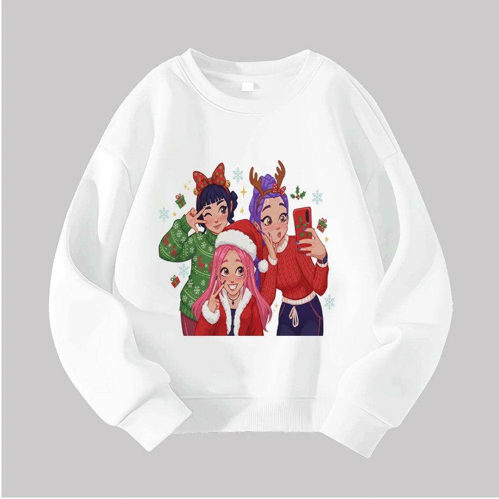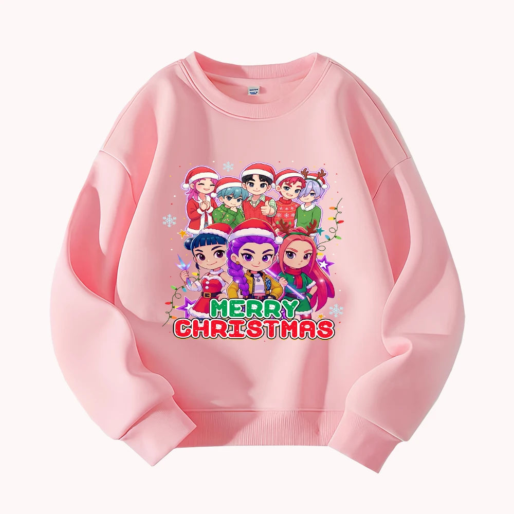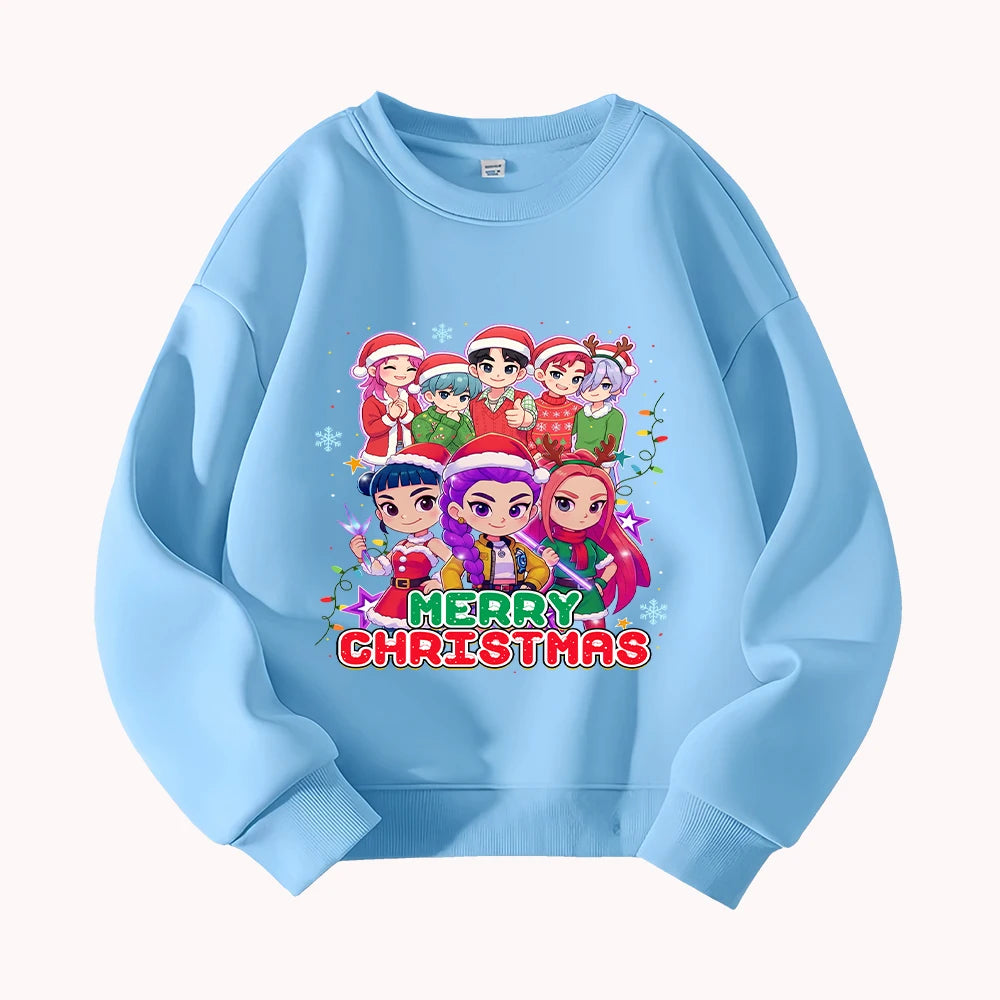 Christmas Kids Crew Neck Sweatshirt with Festive Cartoon Characters for Holiday Fun