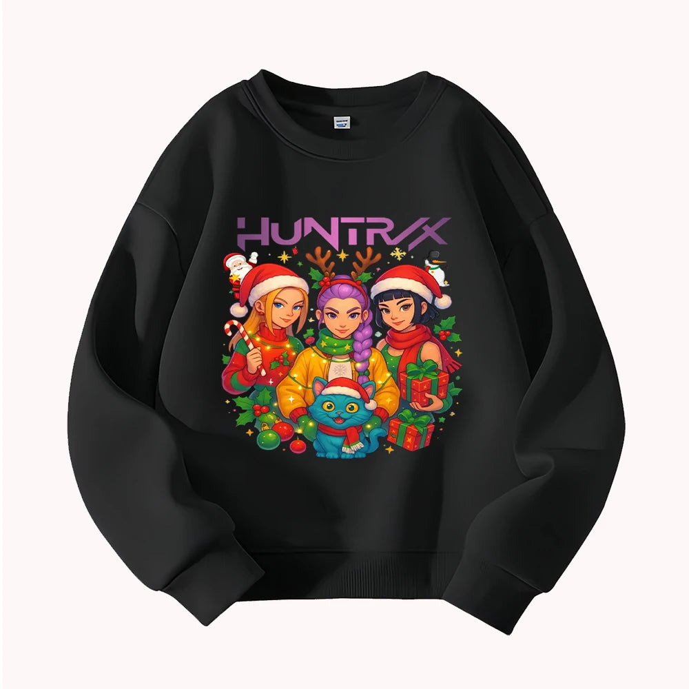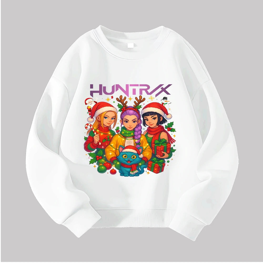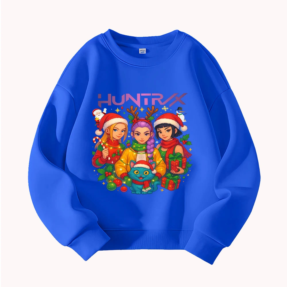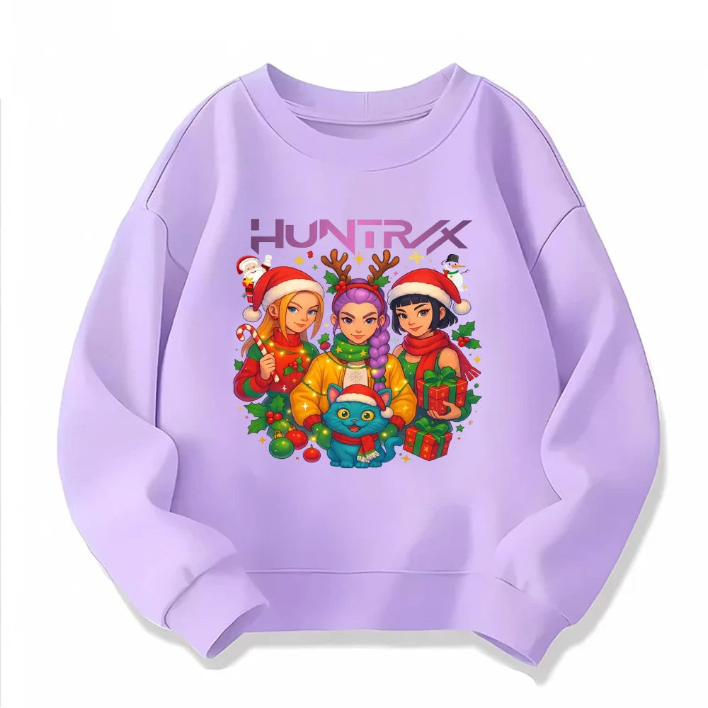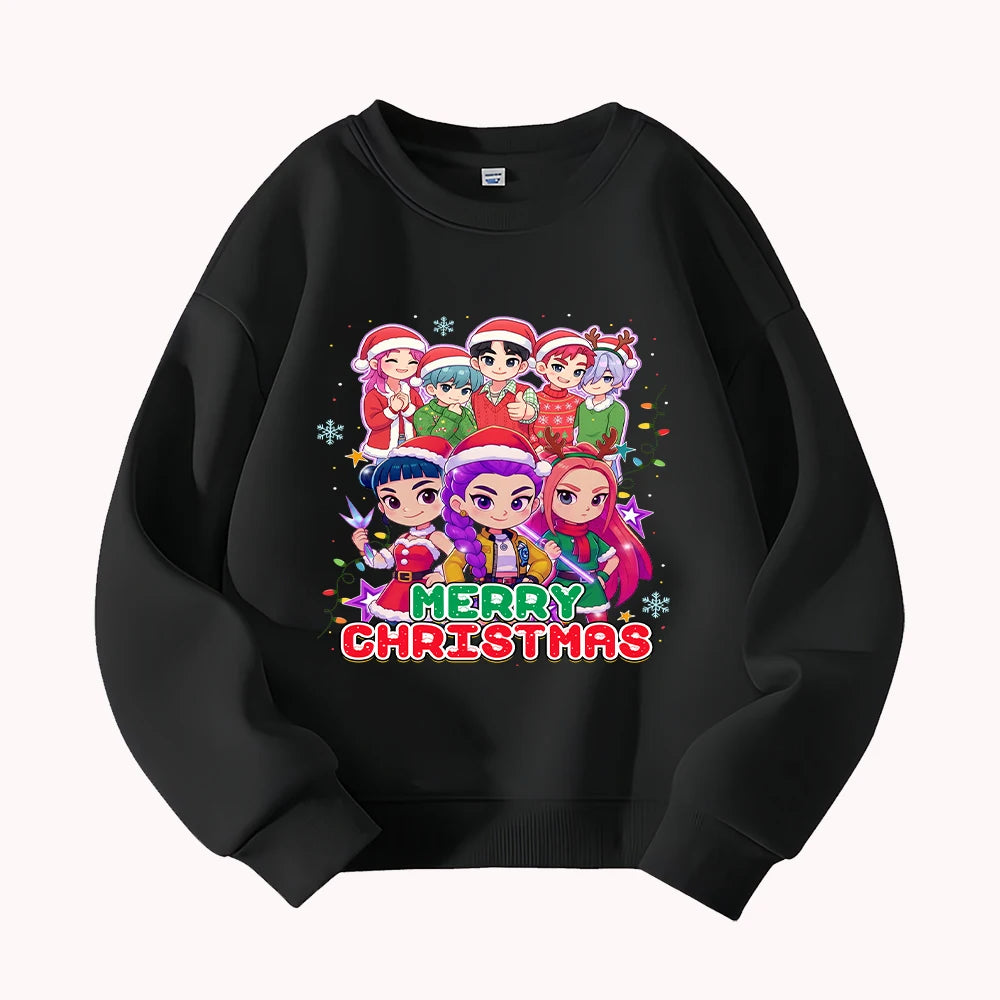 Christmas Kids Crew Neck Sweatshirt with Festive Cartoon Characters for Holiday Fun