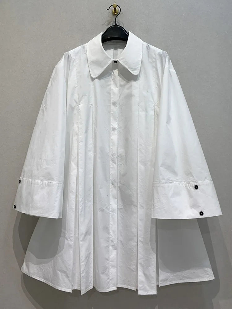 DEAT Fashion Women Shirt Dress Lapel Loose Single Breasted 65% Cotton Long Slevee Overknee Pleated Dresses Spring 2025 7AB2799