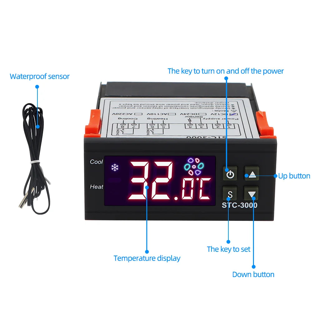 Digital Temperature Controller STC-1000 220V 12V two relay Thermostat controller for incubator Heating Cooling Thermoregulator