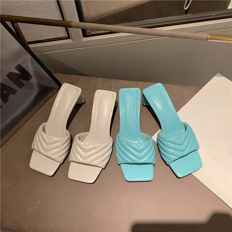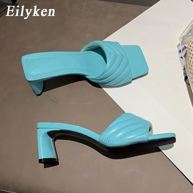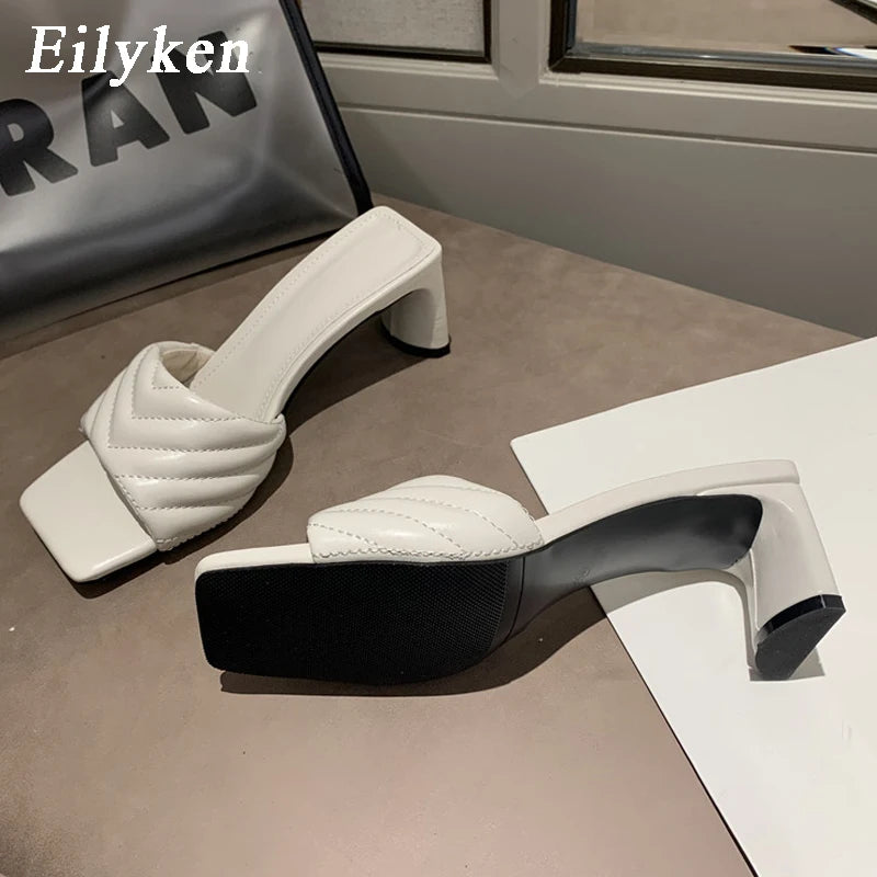 Eilyken Fashion Elegant Slippers Womens High Quality Solid Cozy PU Leather Square Toe Sandals Femme Low Heel Party Dress Shoes