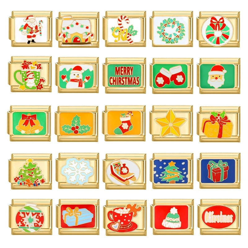 FUNIQUE Romantic Christmas Tree Snowman Sleigh Garland Italian Charm Links Fit 9mm Bracelet Stainless Steel DIY Jewelry Making