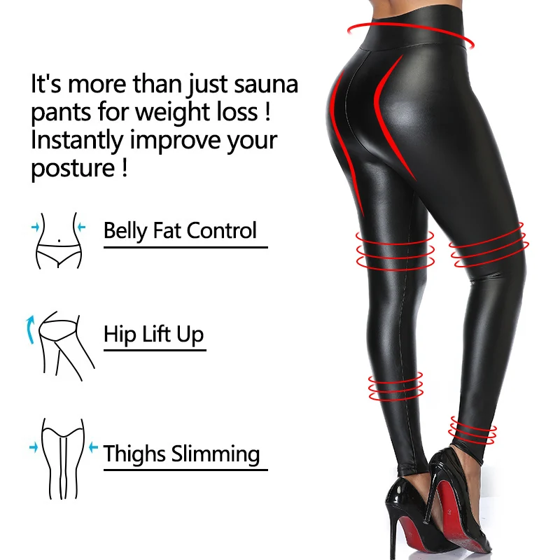 Leggings de piel sintética para mujer: nuestra cintura alta se ajusta a tu cintura para mantenerlos en su lugar y evitar que se caigan. Es la mejor combinación de moda y funcionalidad.