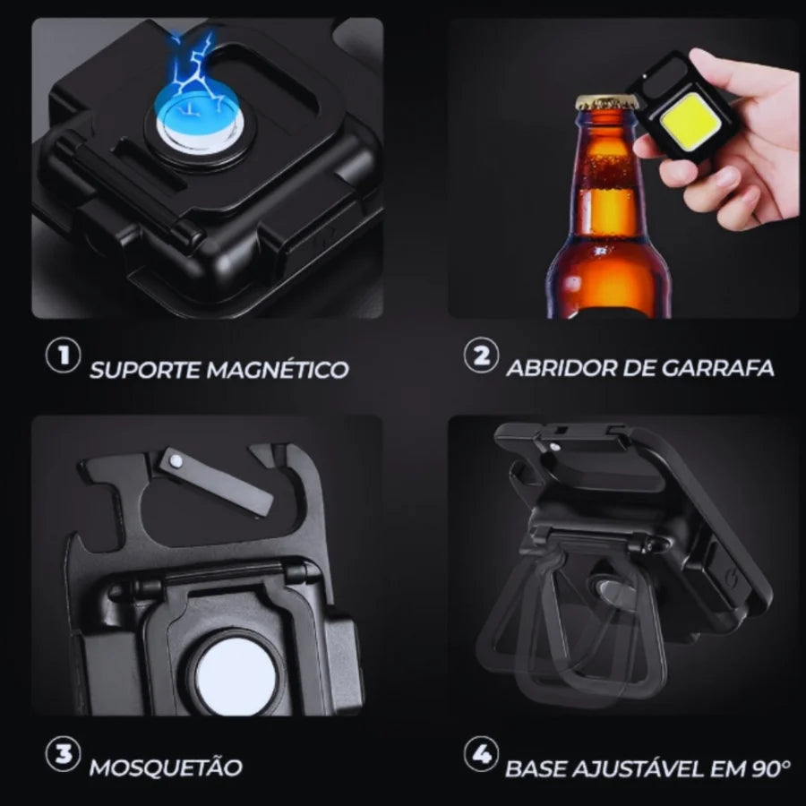 Mini Lanterna Com Led 4 Modos de Luz 4 Funções, Chaveiro portatil e abridor de garrafas