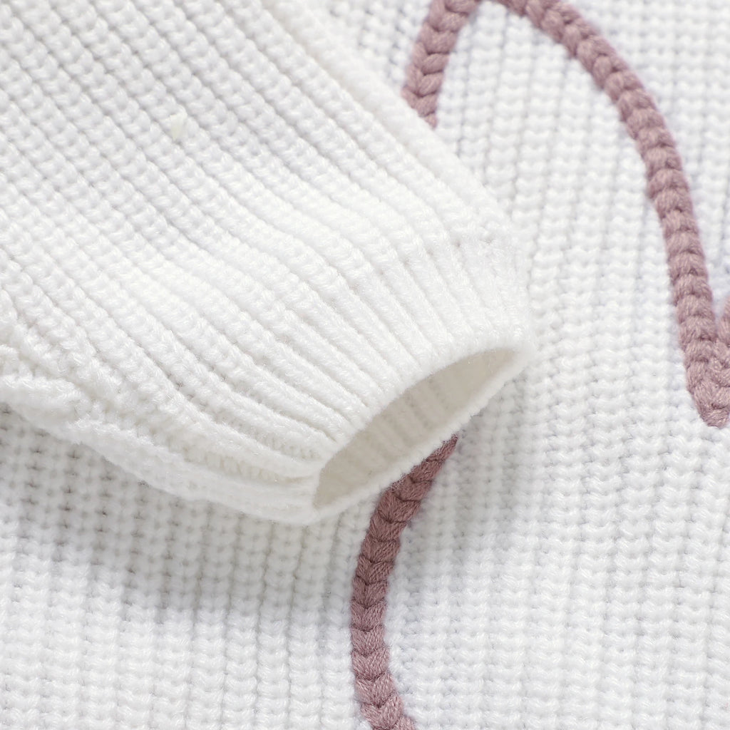 Baby Girl Sweater Long Sleeve Round Neck Ice Cream Embroidery Knit Pullover Toddler Tops