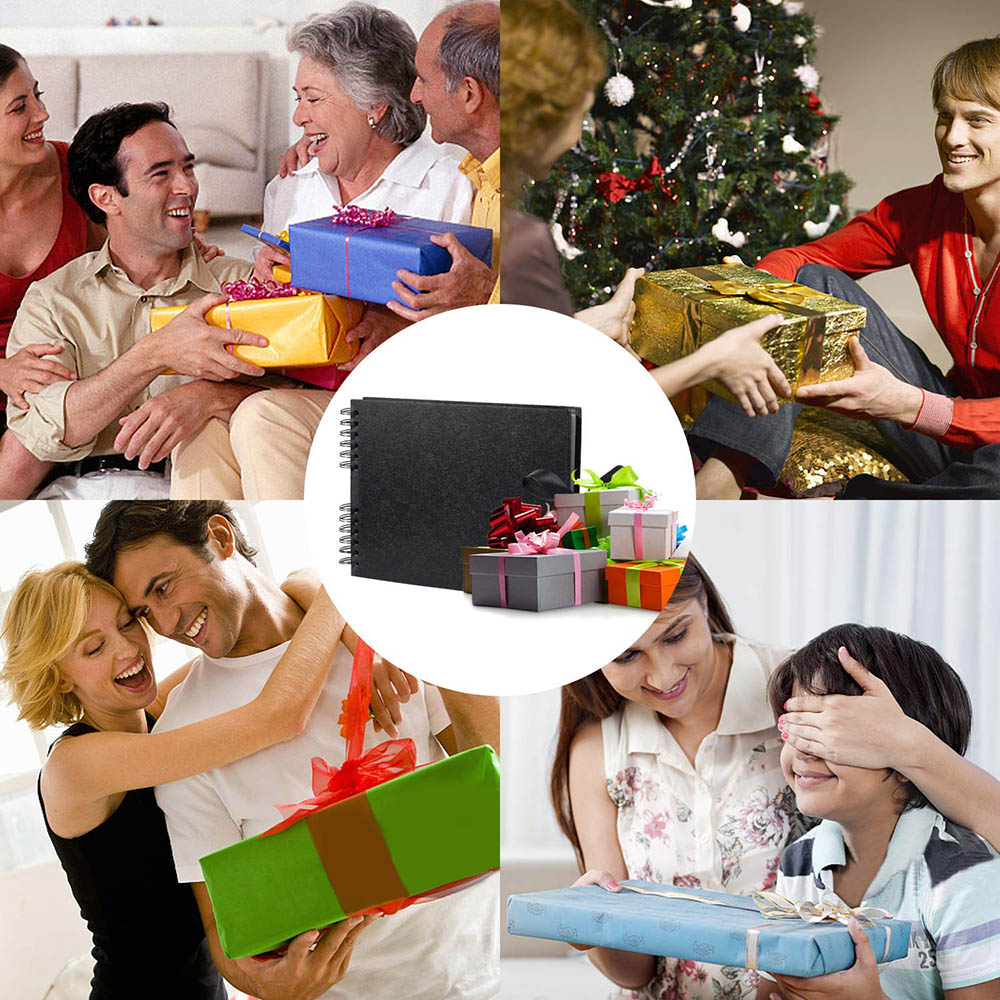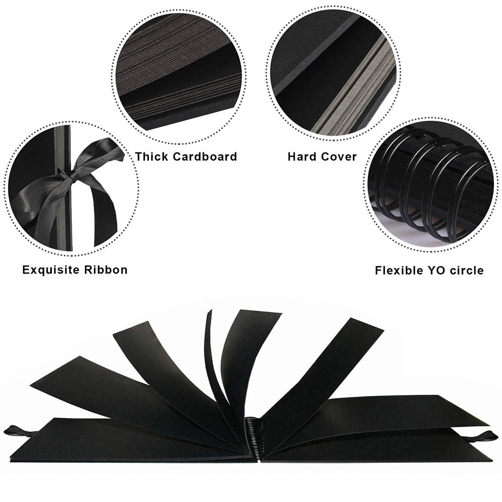High Quality : All albums are made of high-quality eco-friendly thick kraft paper..Hard card cover with exquisite black ribbon, uperior black pages,non-fading, leaving you with a durable and beautiful