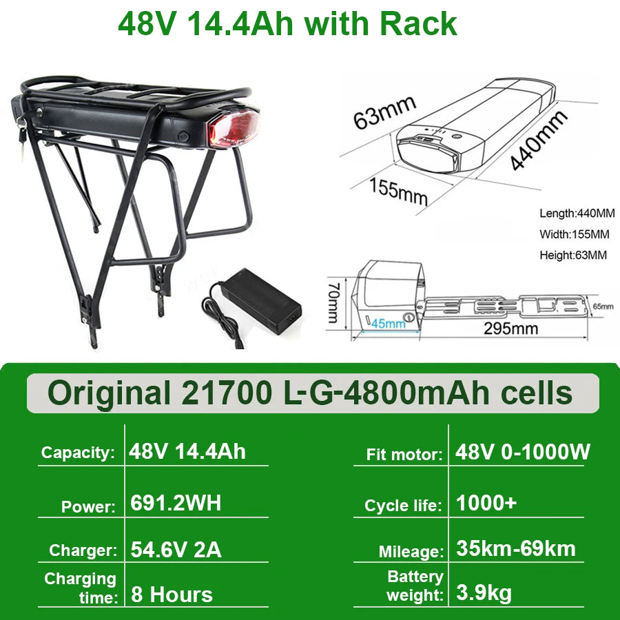 Rear Rack Ebike Battery Specs: