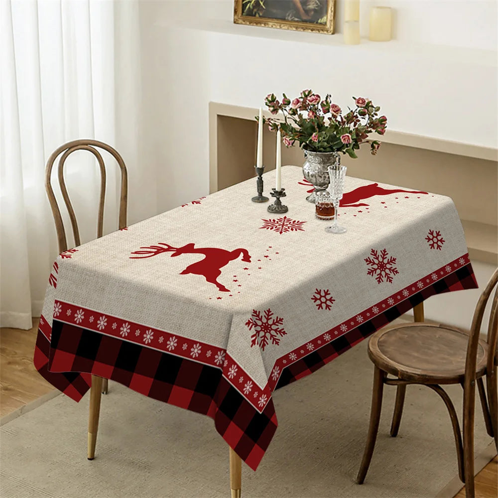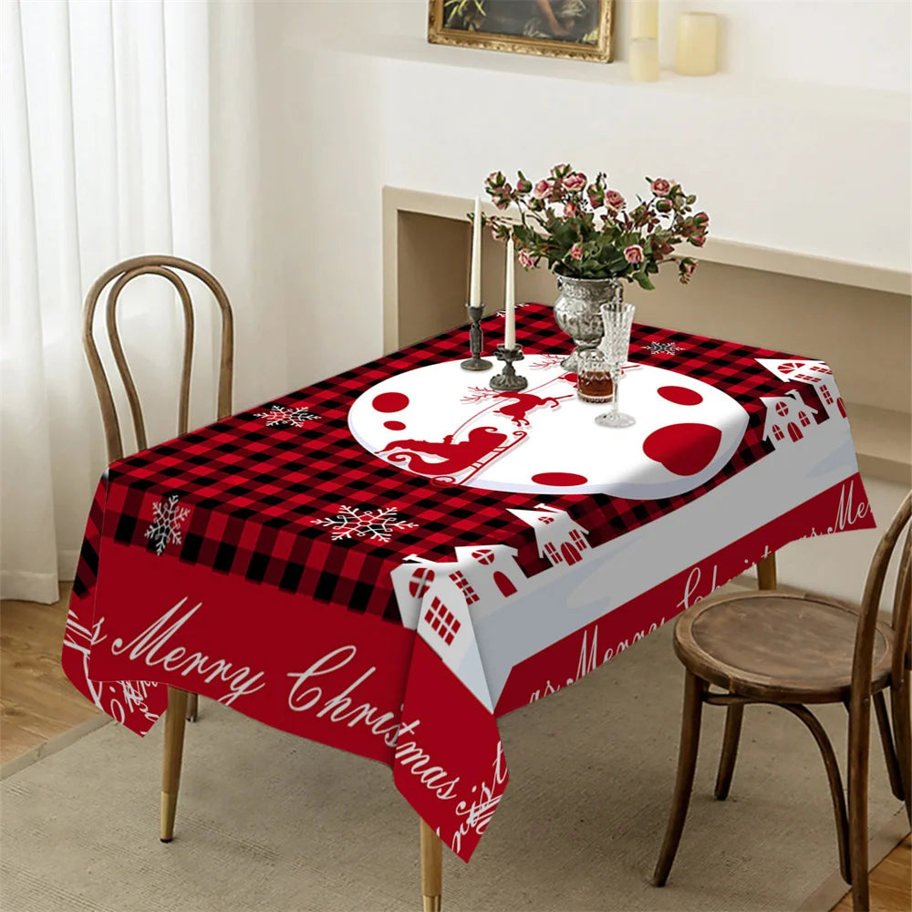 Red black plaid elk table cloth Sleigh snowman table cloth Christmas party table cloth end table tablecloth New Year decorations