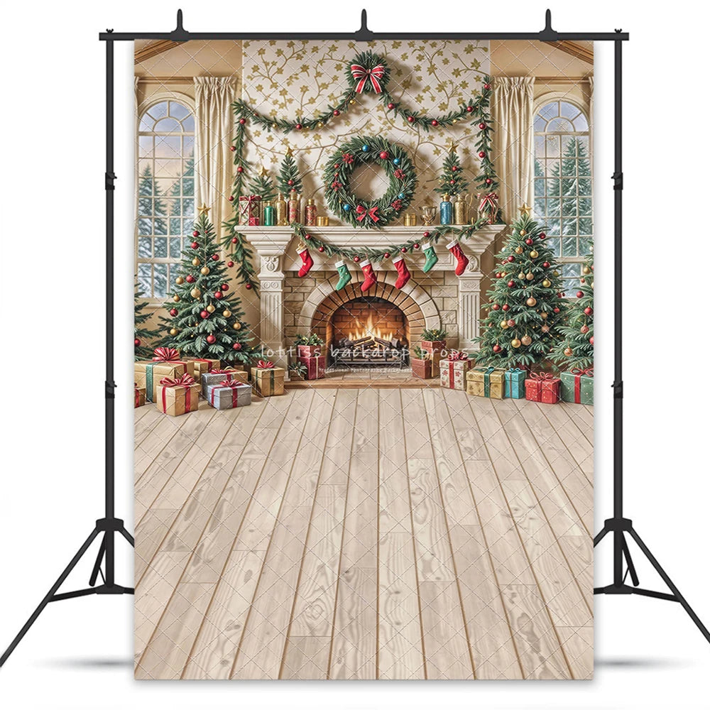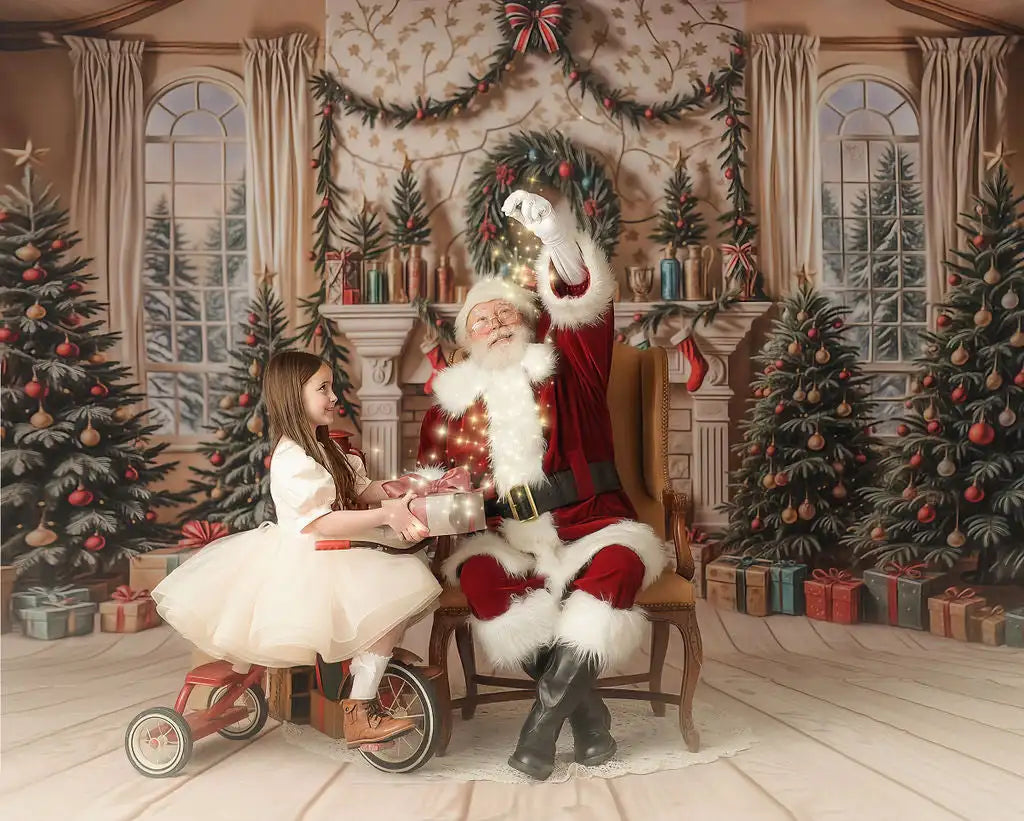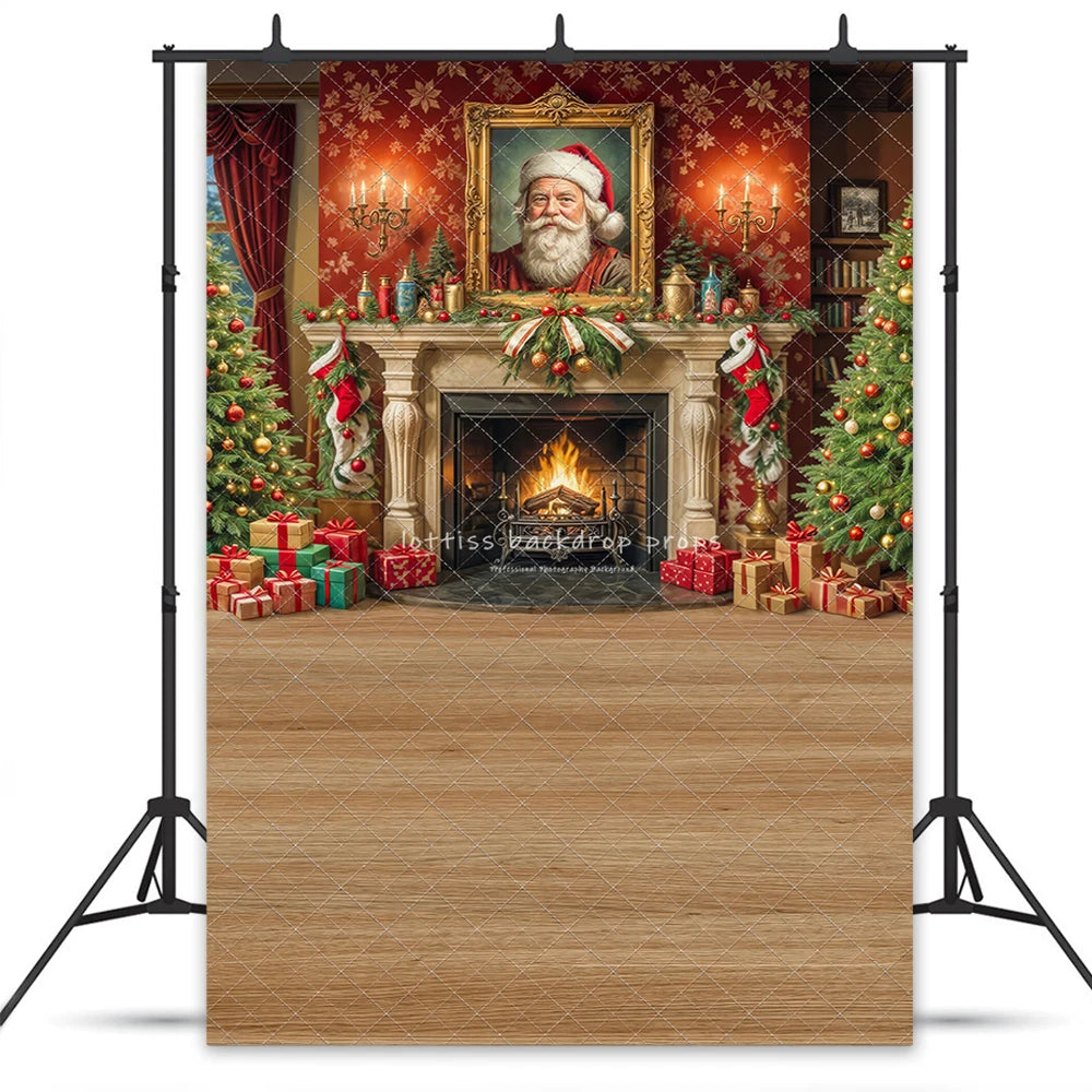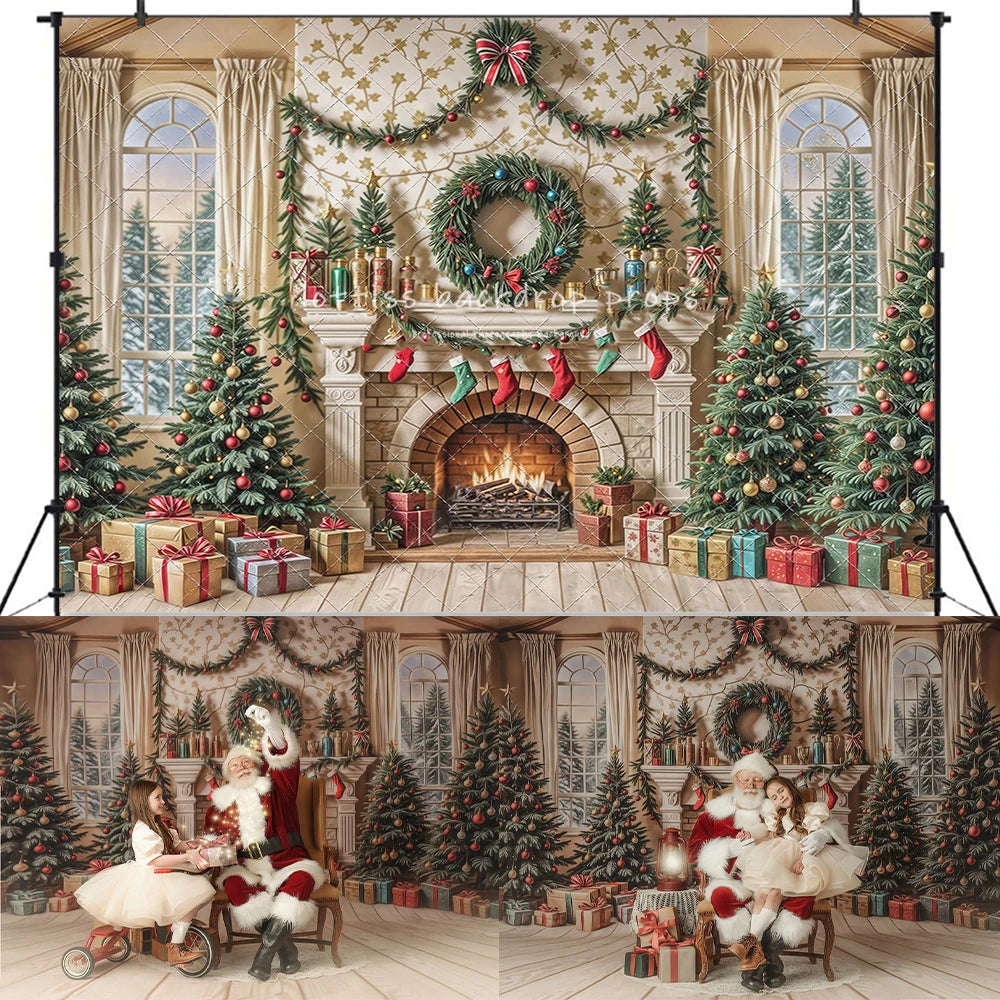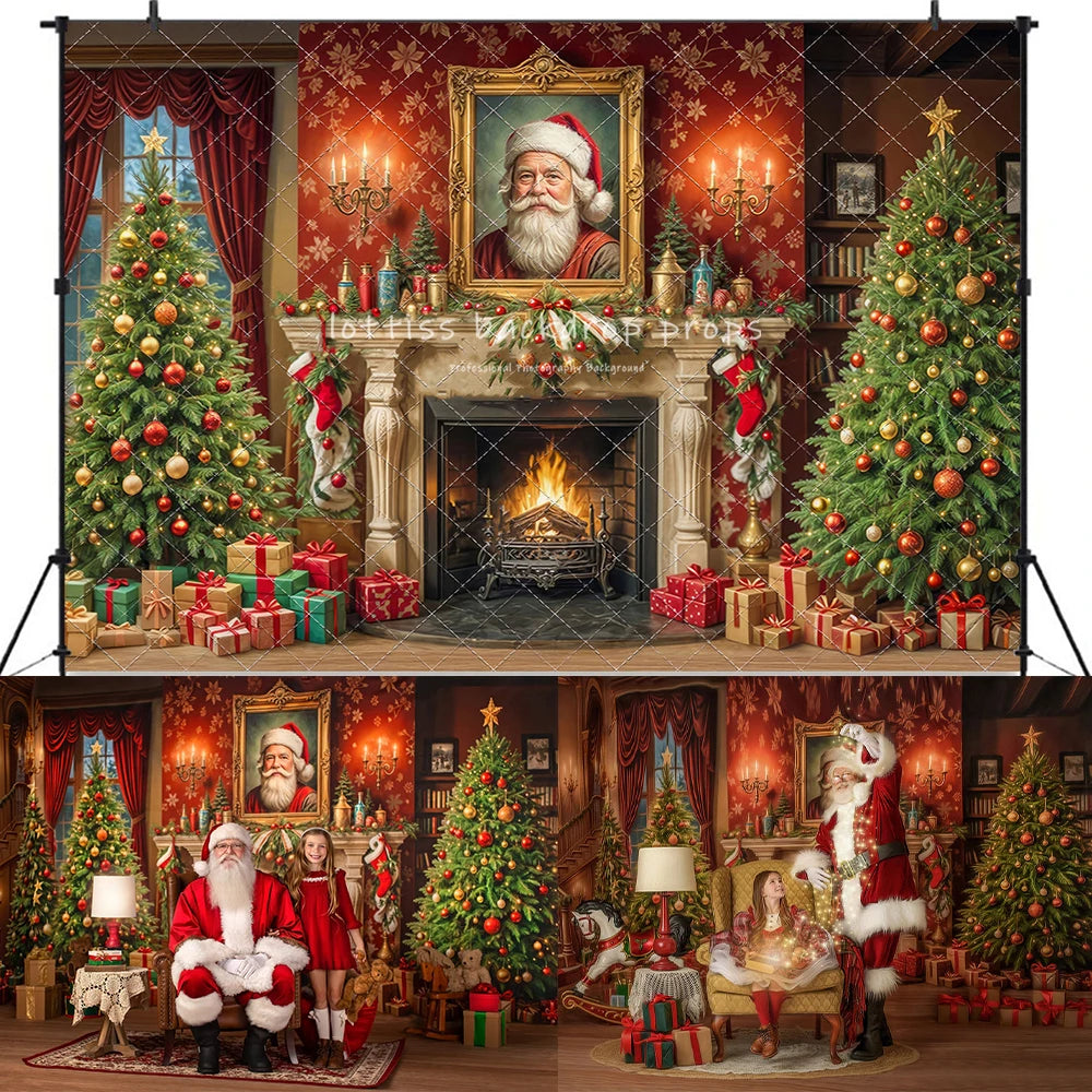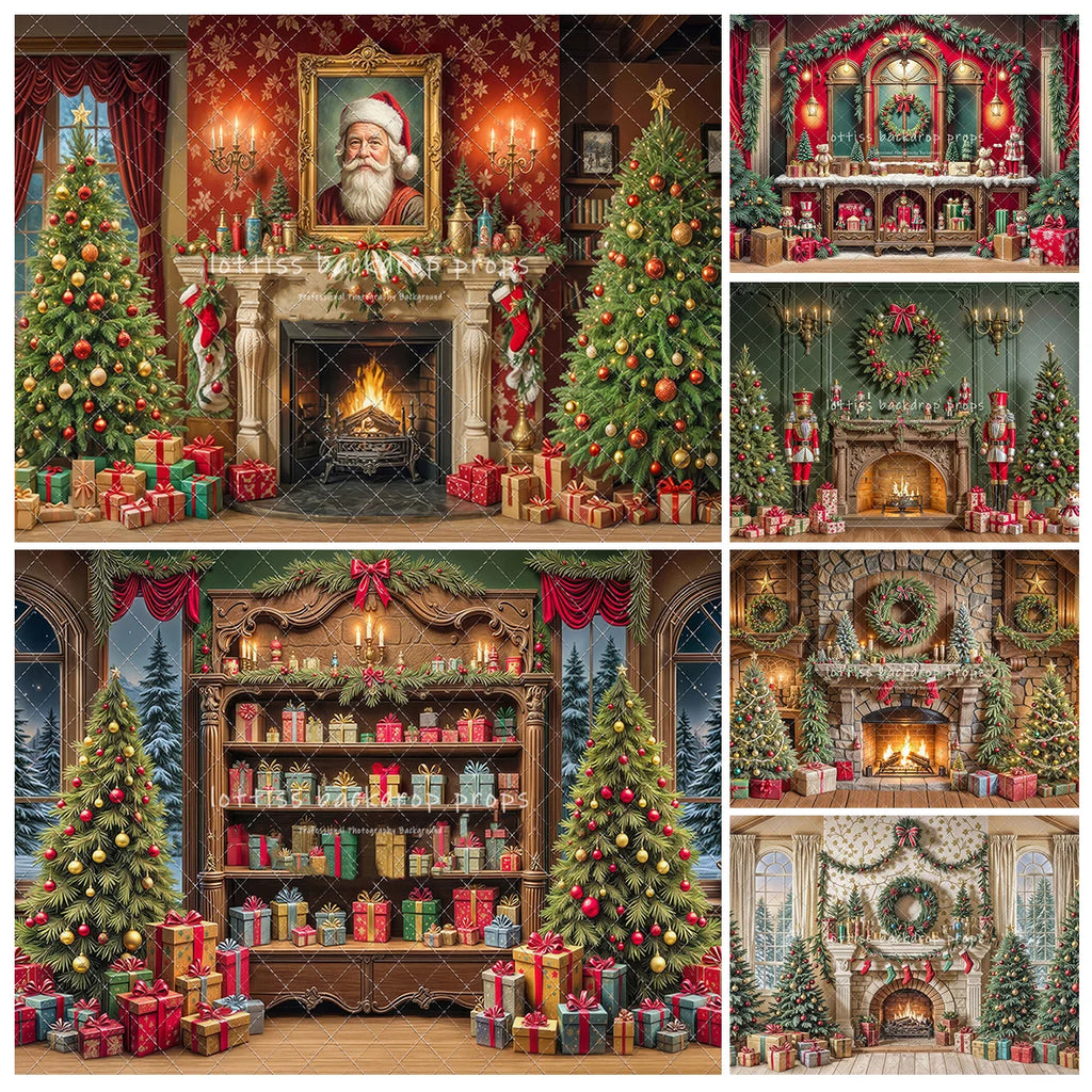 Santa Claus Workshop Backdrops Kids Family Photography Props Magic Christmas Fireplace Gifts Wreath Xmas Trees Backgrounds