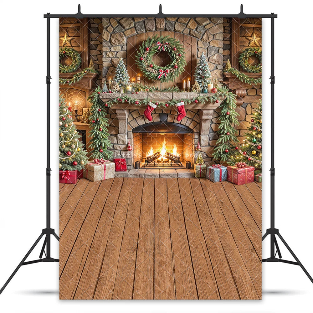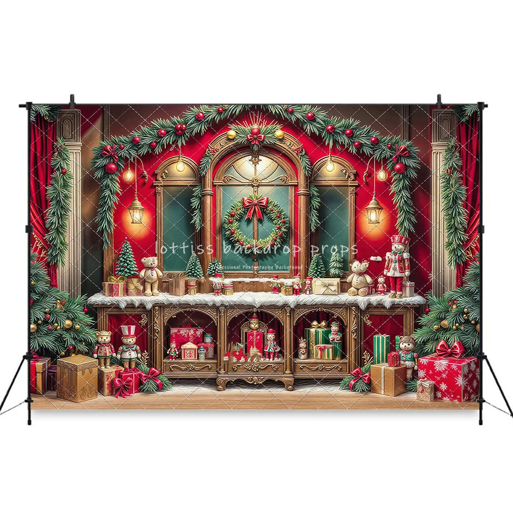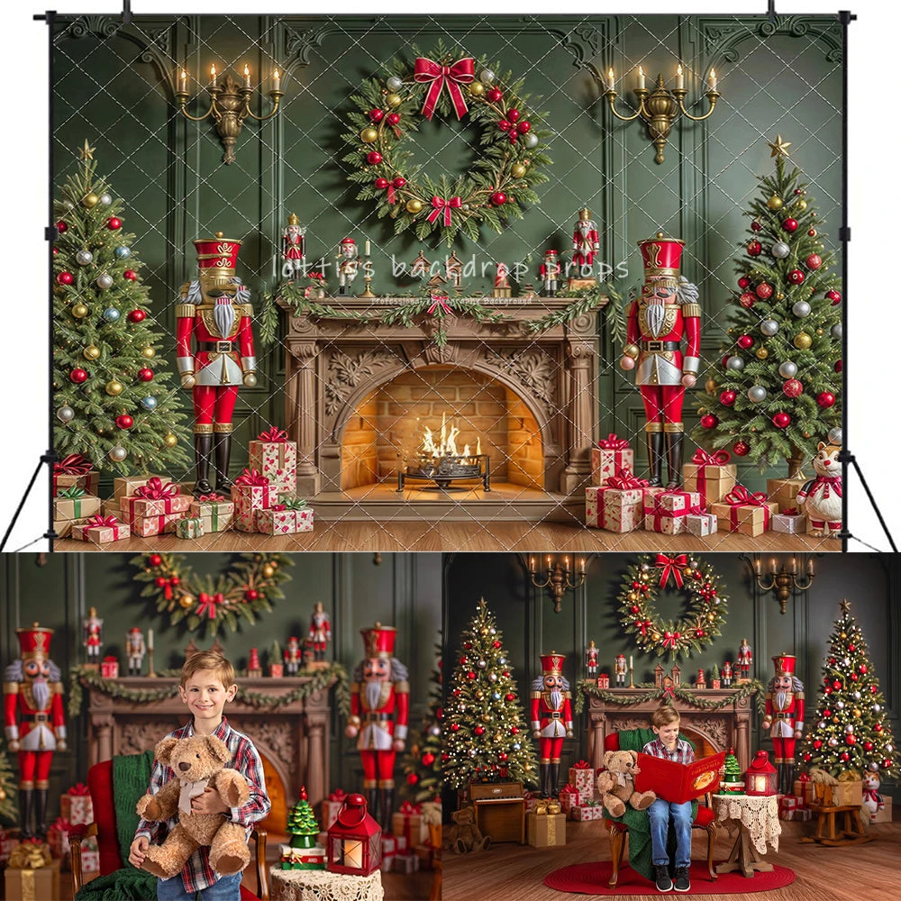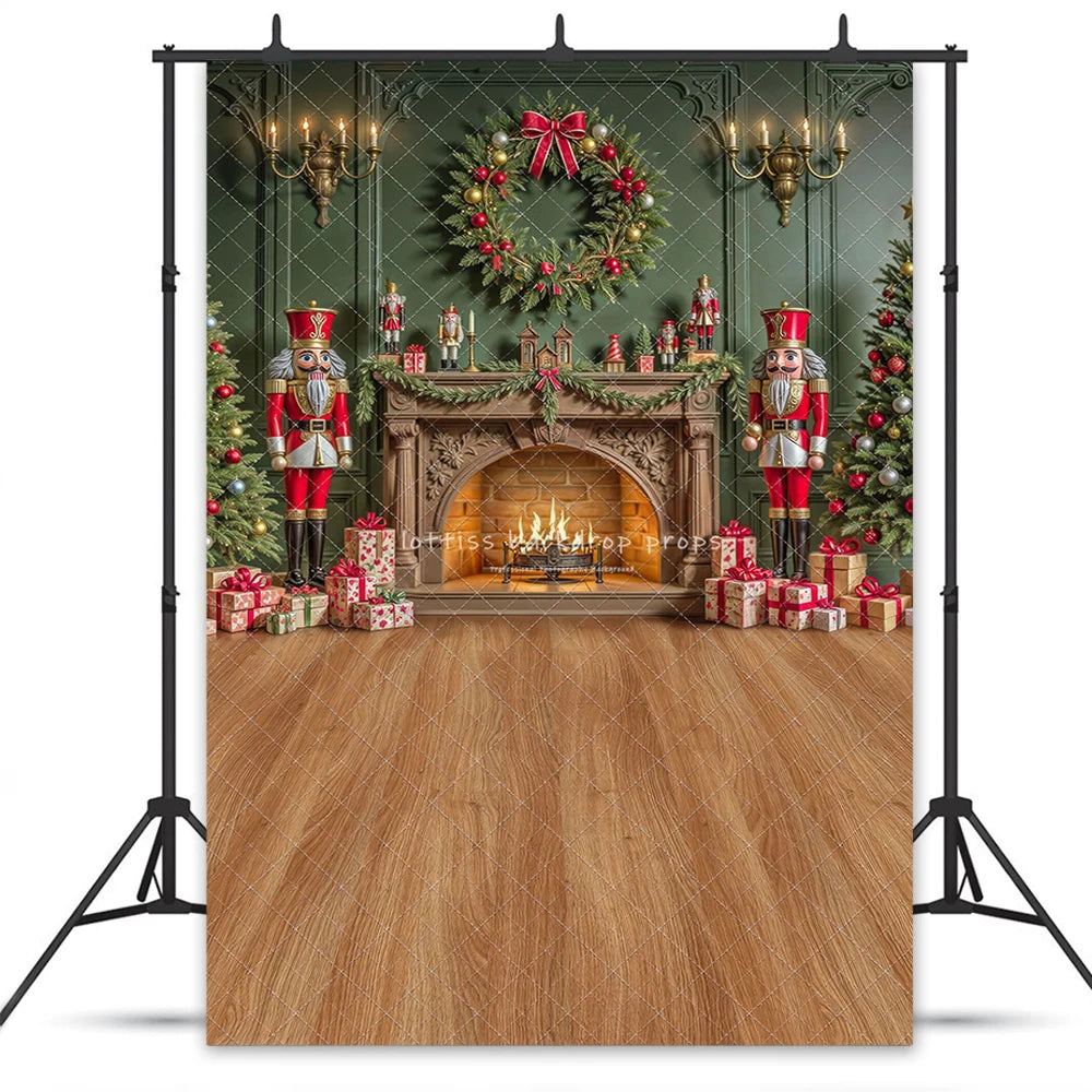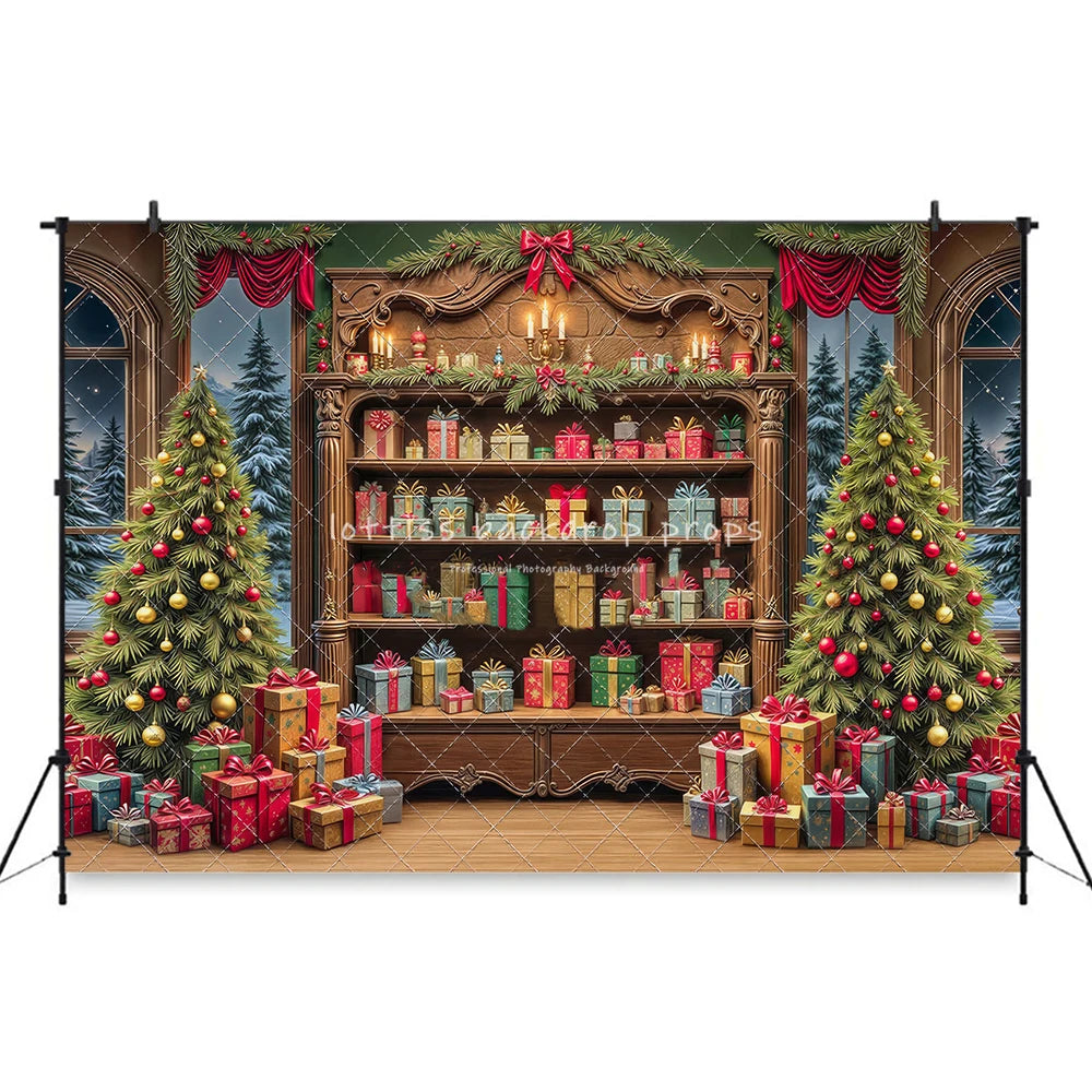 Santa Claus Workshop Backdrops Kids Family Photography Props Magic Christmas Fireplace Gifts Wreath Xmas Trees Backgrounds