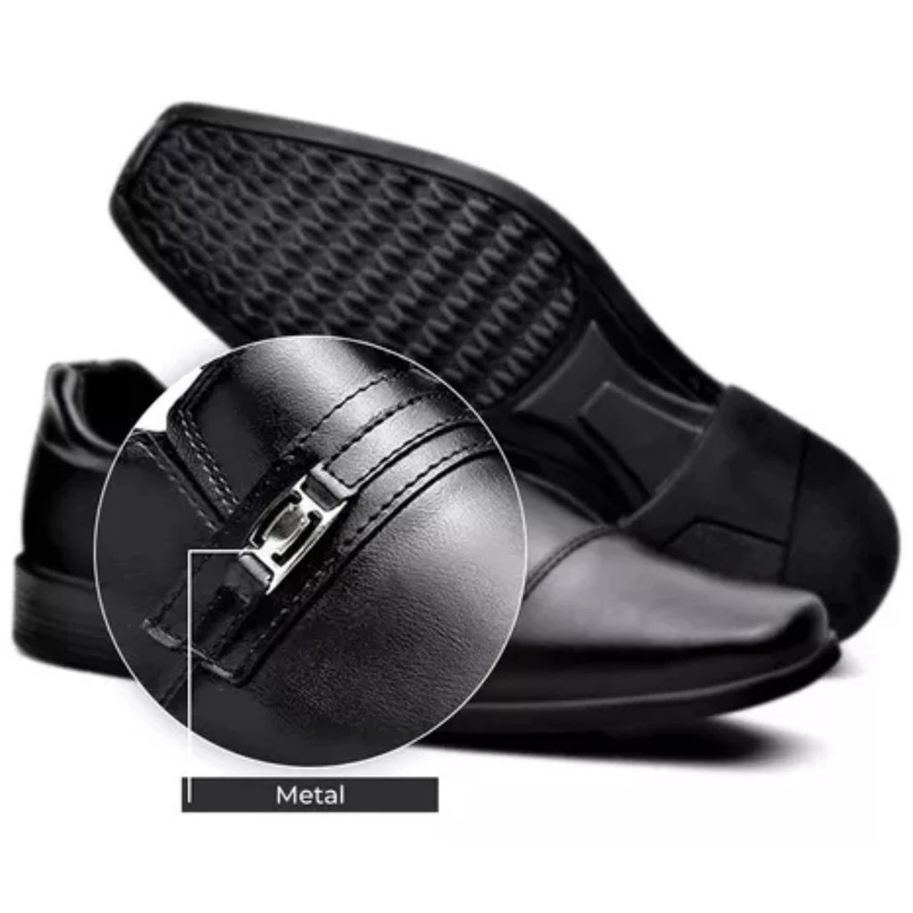 Sapato Social Masculino Detalhe Metal Bico Quadrado Conforto