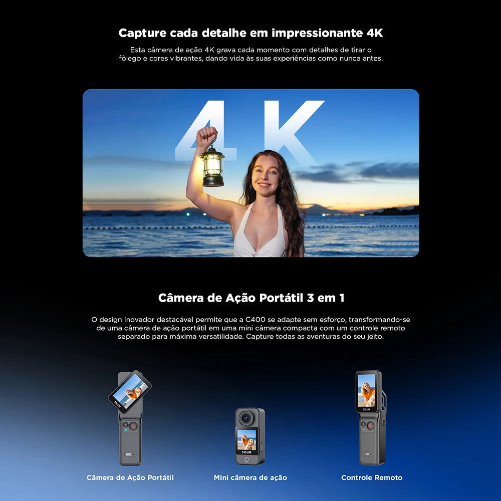 SJCAM C400 Handheld Action Camera Handheld Detachable Rotating Screen Design 4K HD Video Action Camera