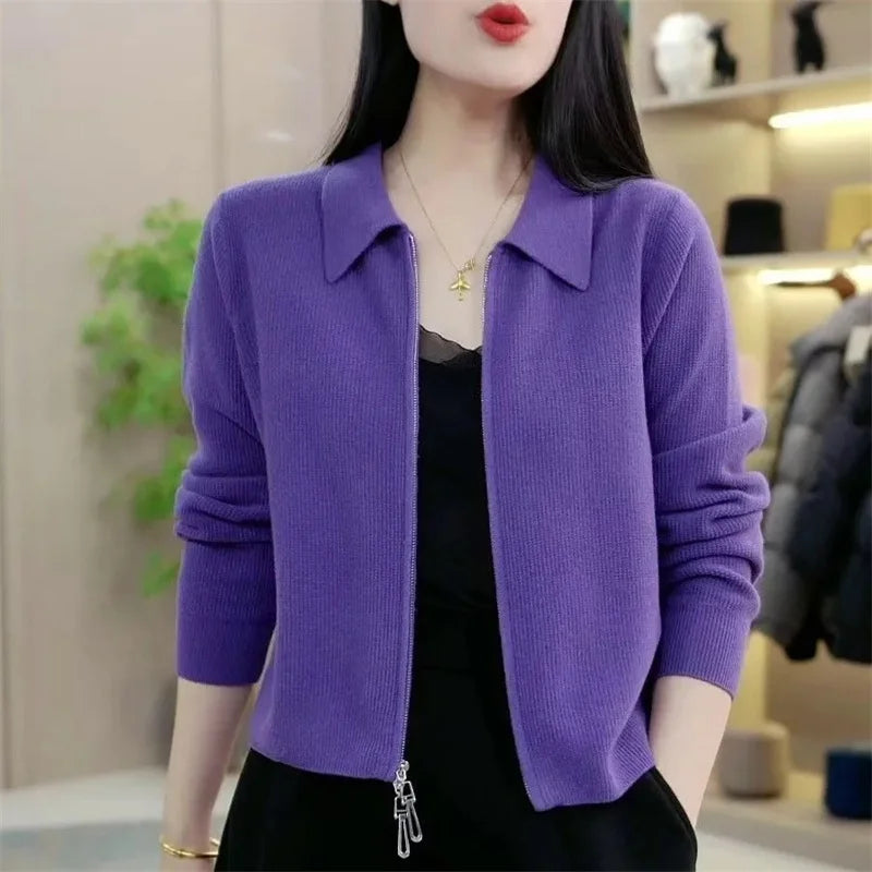 Spring Autumn Lady Knitting Cardigan Jacket Female Short Zipper Sweater Outerwear Women Solid Color Loose Fitting Knitwear Coat