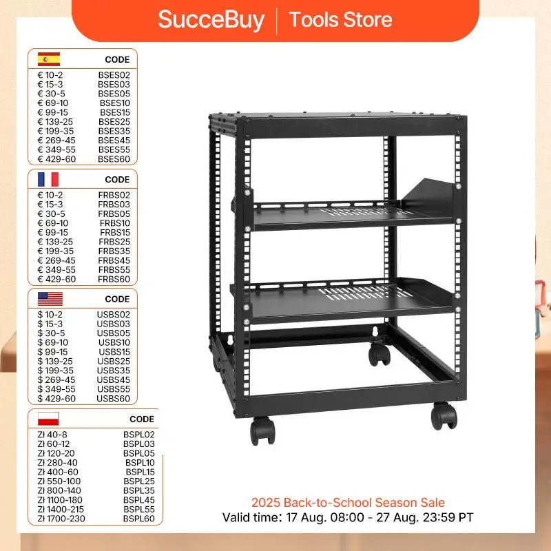 The SucceBuy 12U open frame rack offers a reliable storage solution for your network equipment. Designed for both wall-mounted and free-standing setups, it’s ideal for maximizing limited spaces while providing professional-grade support.