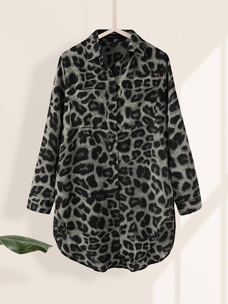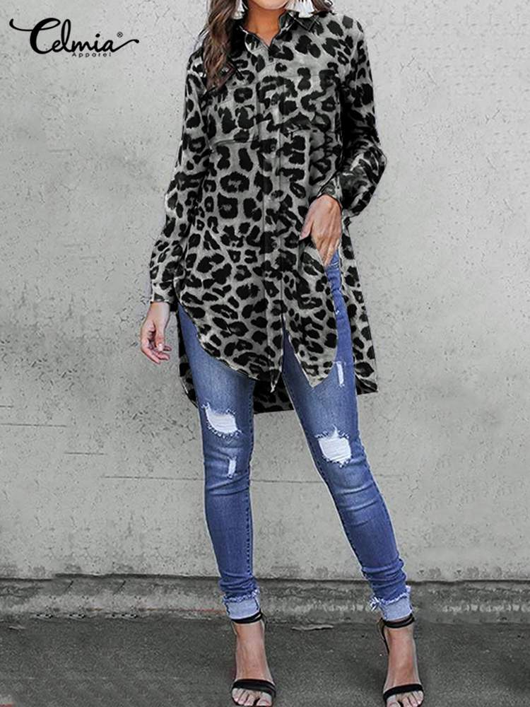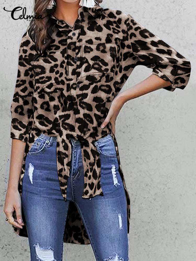 Túnicas Mujer Camisas Celmia Verano Vintage Estampado de leopardo 2022 Blusas largas Elegantes Mangas largas Oficina Tops Casual Blusas sueltas