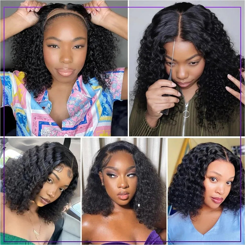 YKB 16 18 Inch Short Bob Wig Human Hair Curly Wigs 13x6 Lace Frontal Preplucked Glueless 6x6 Lace Closure Deep Wave 220 Density