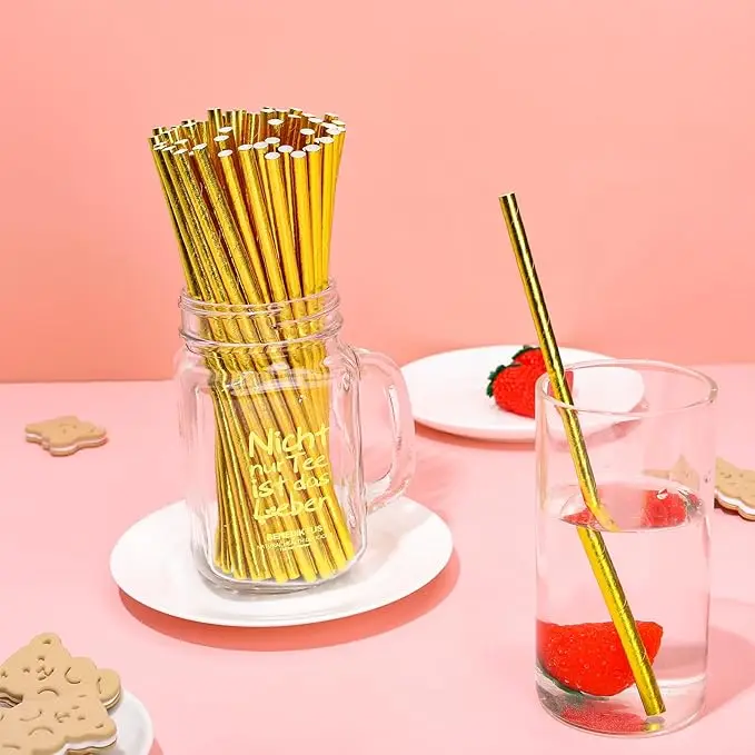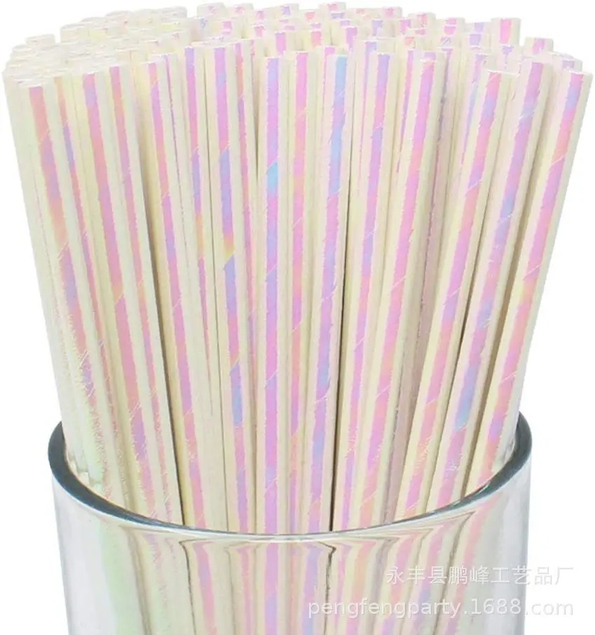 Iridescent Disposable Drinking Party Paper Straws Biodegradable Cocktail Straws For Birthday Party Supplies Baby shower Wedding
