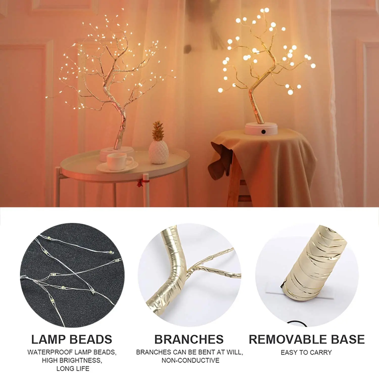 LED Copper Wire Tree Shape Night with Touch Sensor Switch Decoration Battery USB Led Table Lamp Table Light