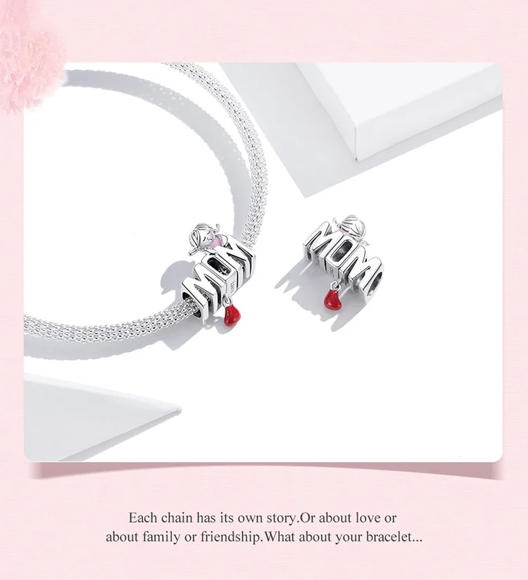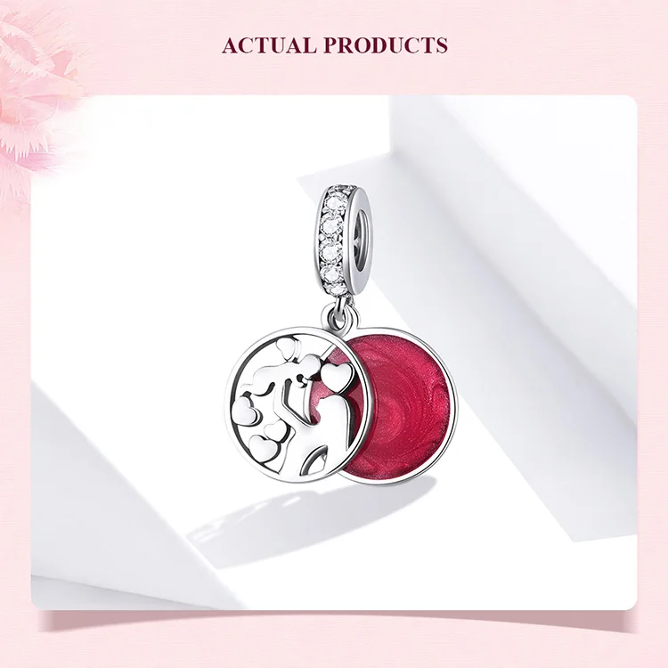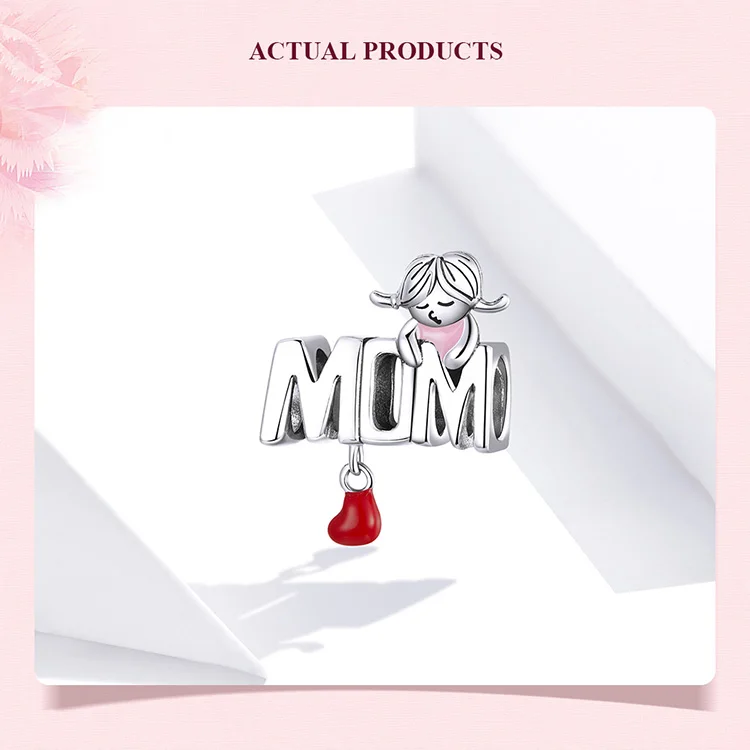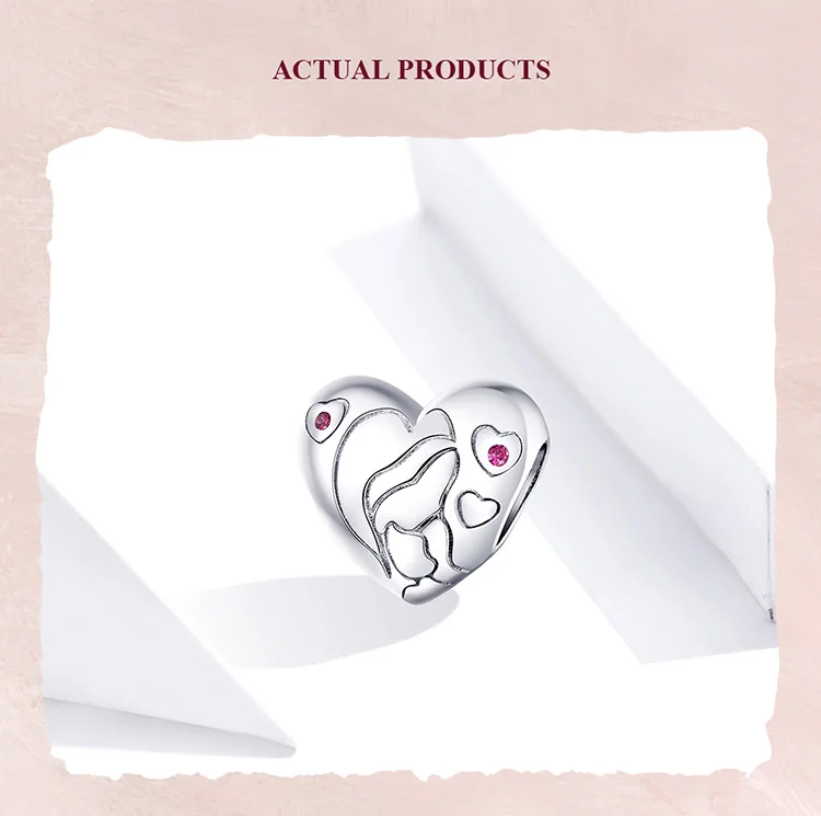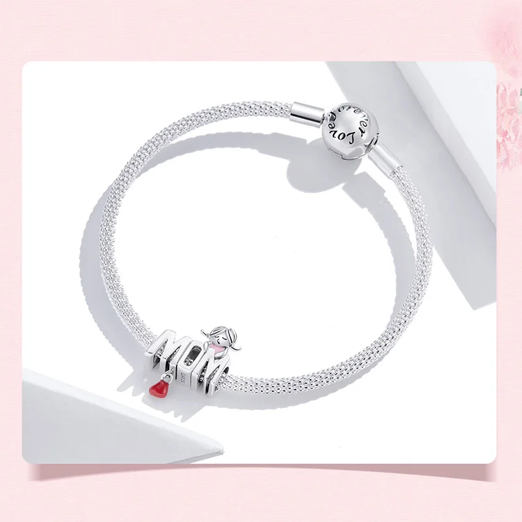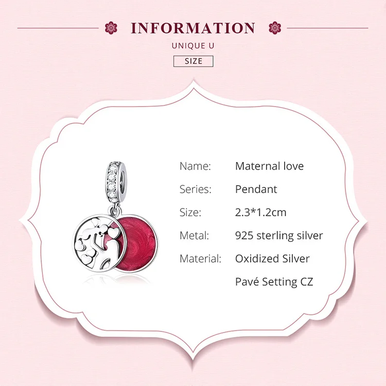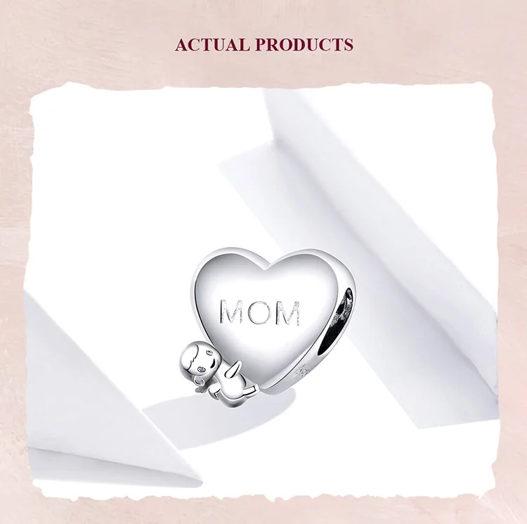 Mom Love Pendant BISAER 925 Sterling Silver Oxidized Maternal Love Mom Mother Beads Charms For Women Silver 925 Jewelry ECC1460