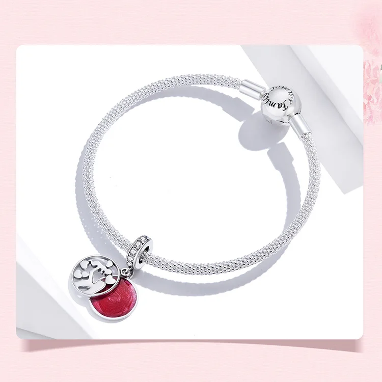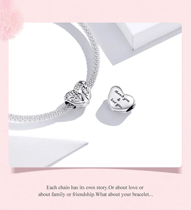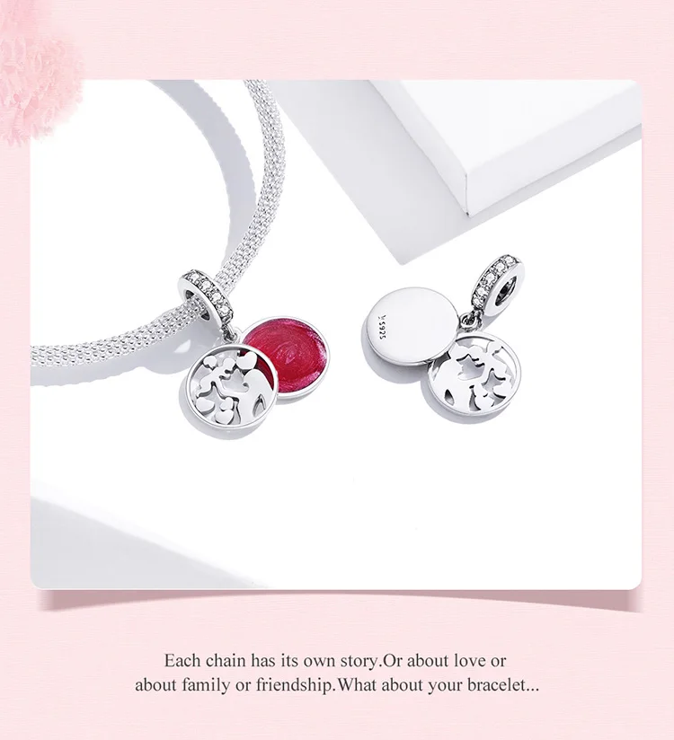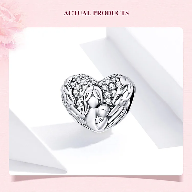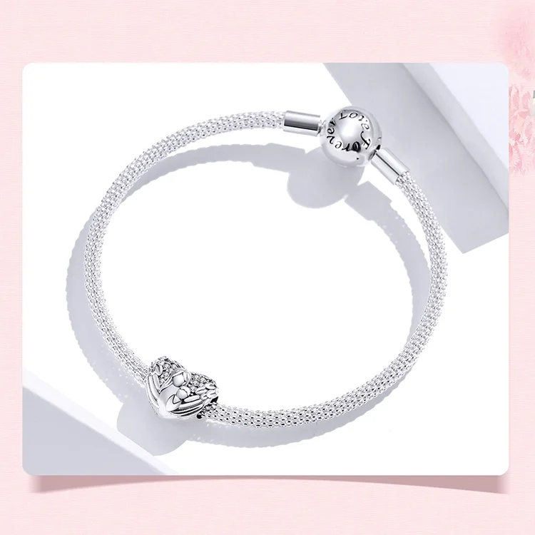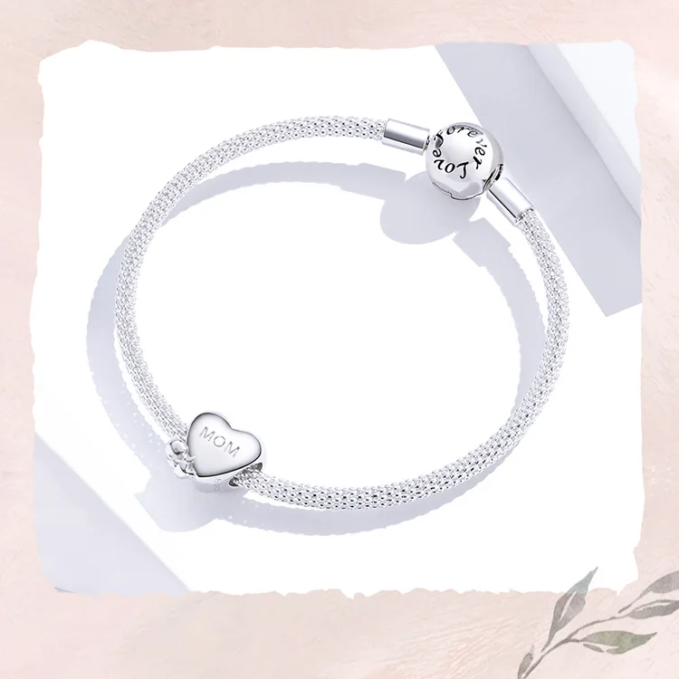 Mom Love Pendant BISAER 925 Sterling Silver Oxidized Maternal Love Mom Mother Beads Charms For Women Silver 925 Jewelry ECC1460