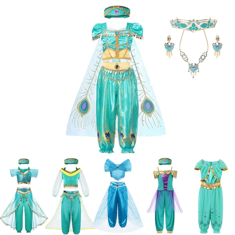 MUABABY Arabian Princess Dress Up Girl Aladdin Fancy Costume Children Photography Halloween Party Outfit Clothes