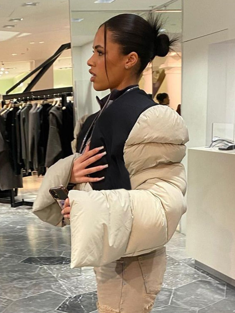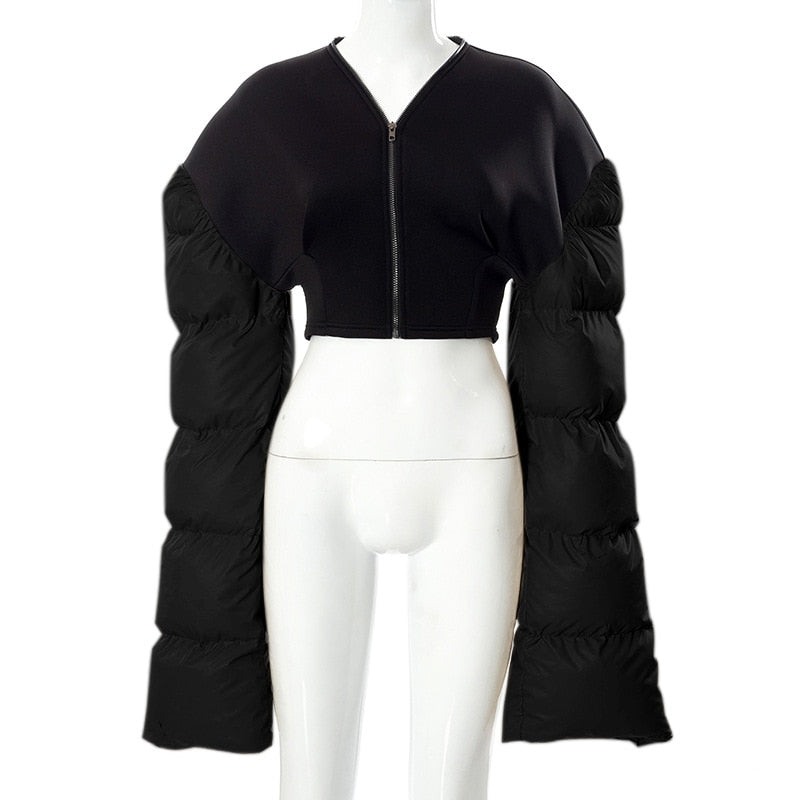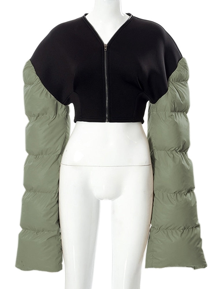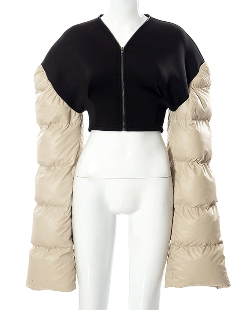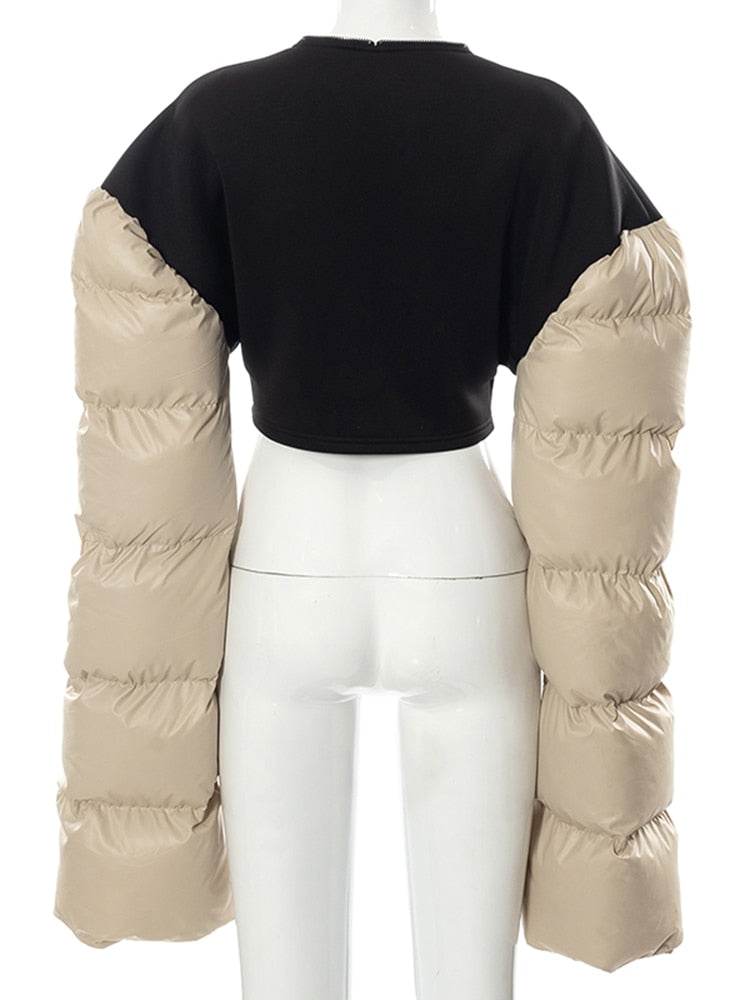 Sisterlinda Spring Patchwork Down Puffer Coat Women Jacket Extra Long Sleves Warm Bubble Christmas Cropped Outerwear Lady Outfit