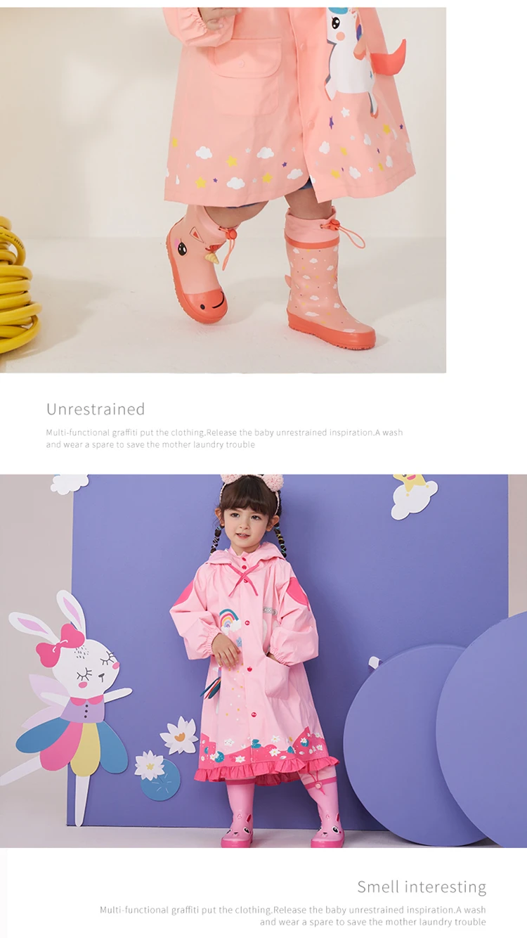 Unicorn Kids Rain Boots Boy Girl Waterproof Shoes New Cartoon Printed Fashion Children Rubber Boots With Calf Waterproof Cover