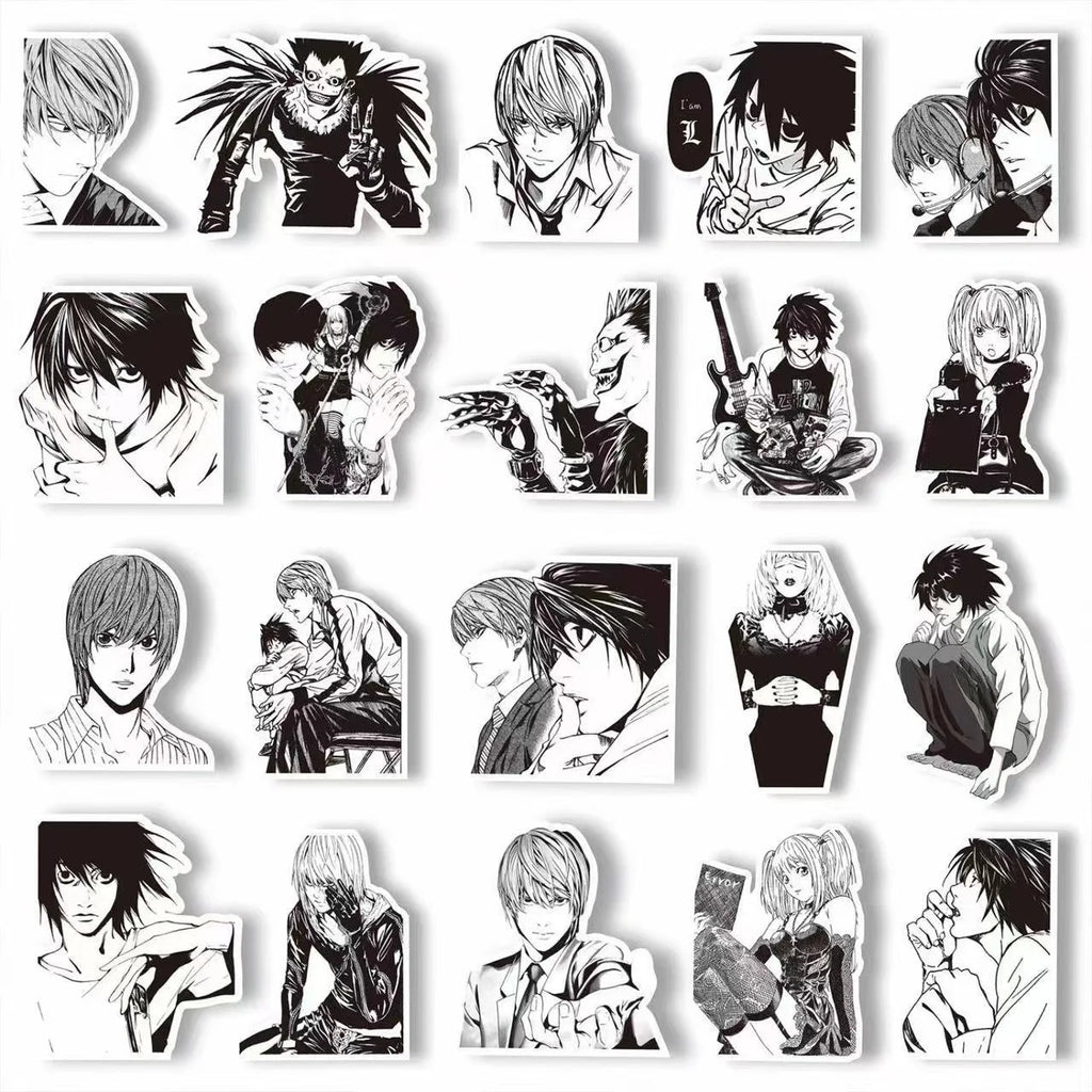 65PCS Anime Death Note Stickers Black White Decals Decoration DIY Scrapbook Luggage Laptop Bike Suitcase Car Graffiti Toys