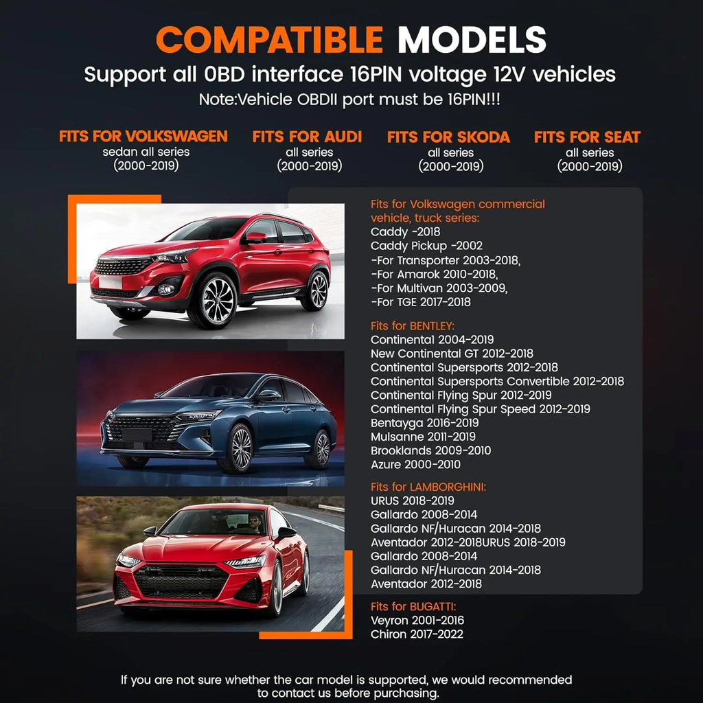 đŸš©VD500’s diagnostic range for Volkswagen vehicles covers the following vehicles: