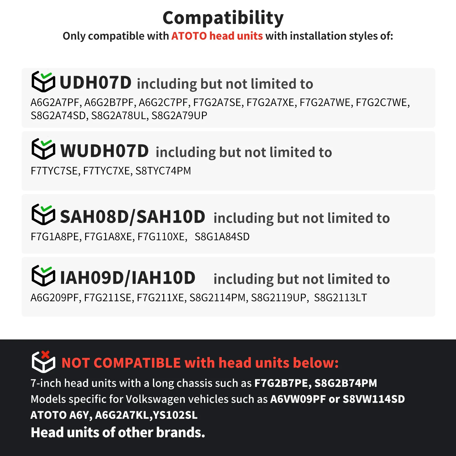 Compatibility:This power pack is specially designed for selected ATOTO head units. Detailed compatibility information is listed below.