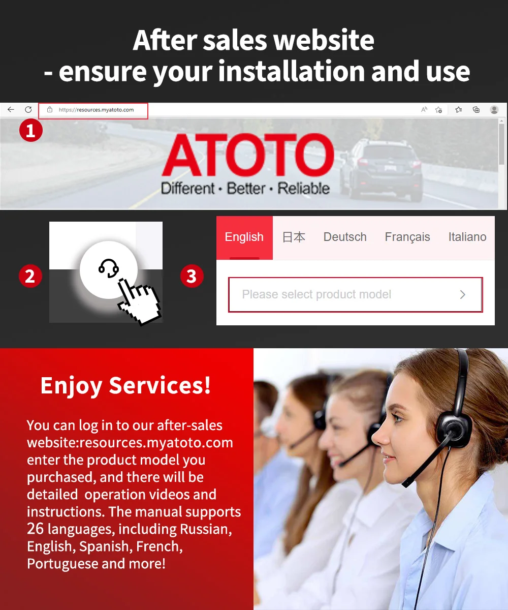 2. ATOTO provides customers with lifetime free firmware, software, user interface, GPS navigation map updates. In order to ensure the normal modification of your car, the manual supports 26 languages including Russian, English, Spanish, French and Portuguese! Includes detailed how-to videos and instructions.
